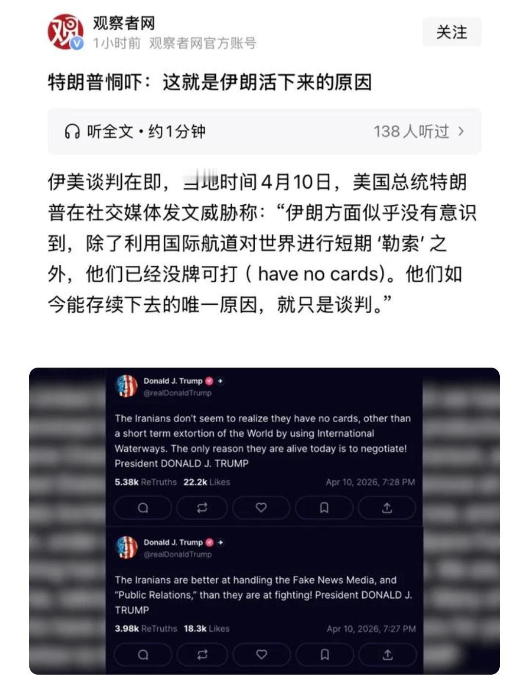 美伊谈判开始,万如恐成背锅侠。美伊谈判,不派国多卿卢比奥,而派副总统万斯,表面理由是万斯一开始便反对美伊战争。但其实万斯是去给特朗普背锅的,因为万斯干这活是注定不会成功的,美伊双方的诉求差异太大,不可能有共识。如果万斯强硬,导致谈判破裂,战端重开,则万斯面临谈判无能导致战争扩大之批评。如果万斯软弱,让步过多,又会导致丧国辱国的批评。今天,万斯大概懂了什么叫伴君如伴虎了。