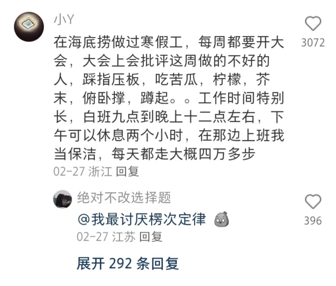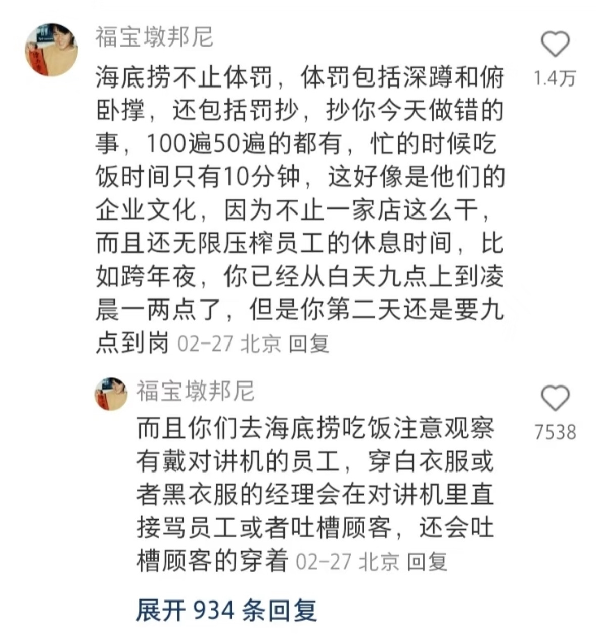 海底捞礼物 员工罚款购入之前不就就曝光过,不止罚款,还有体罚!虽然工资高但也不能