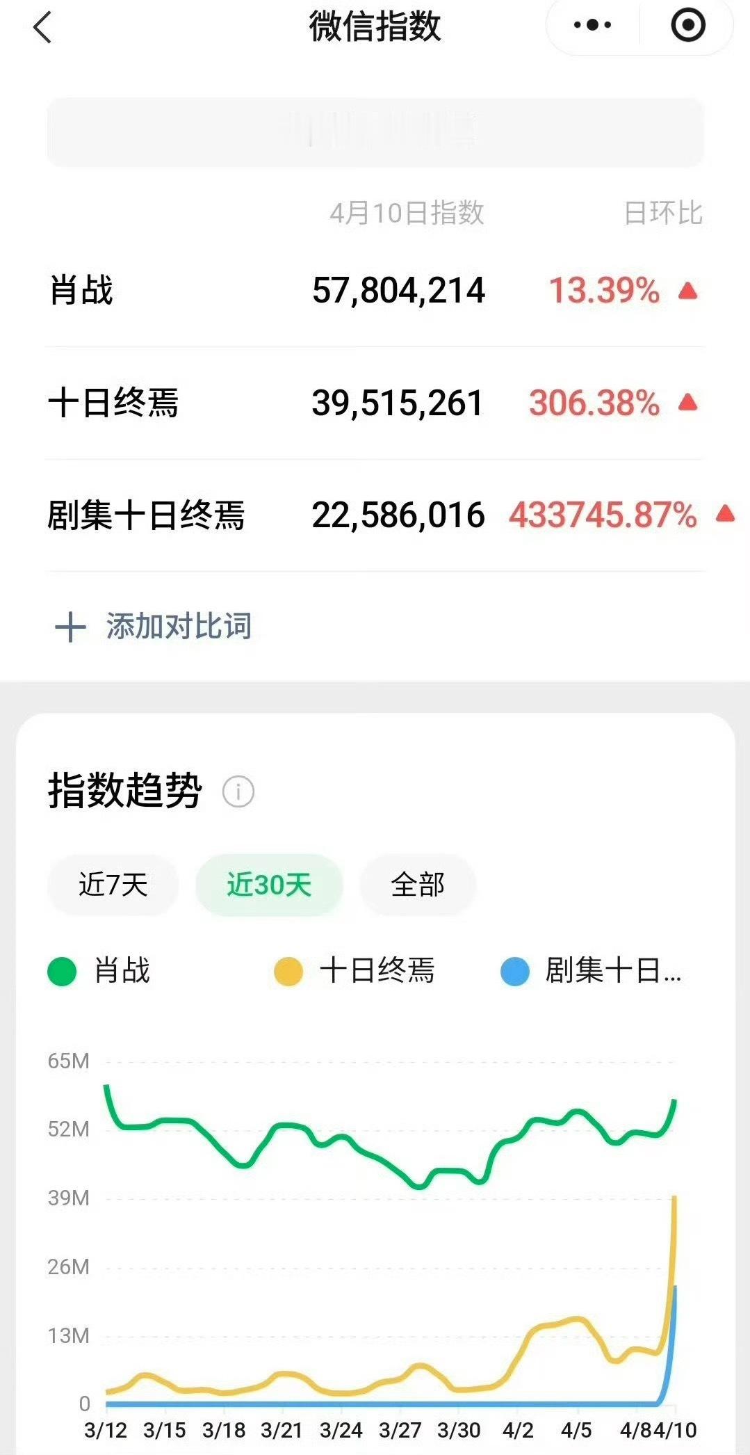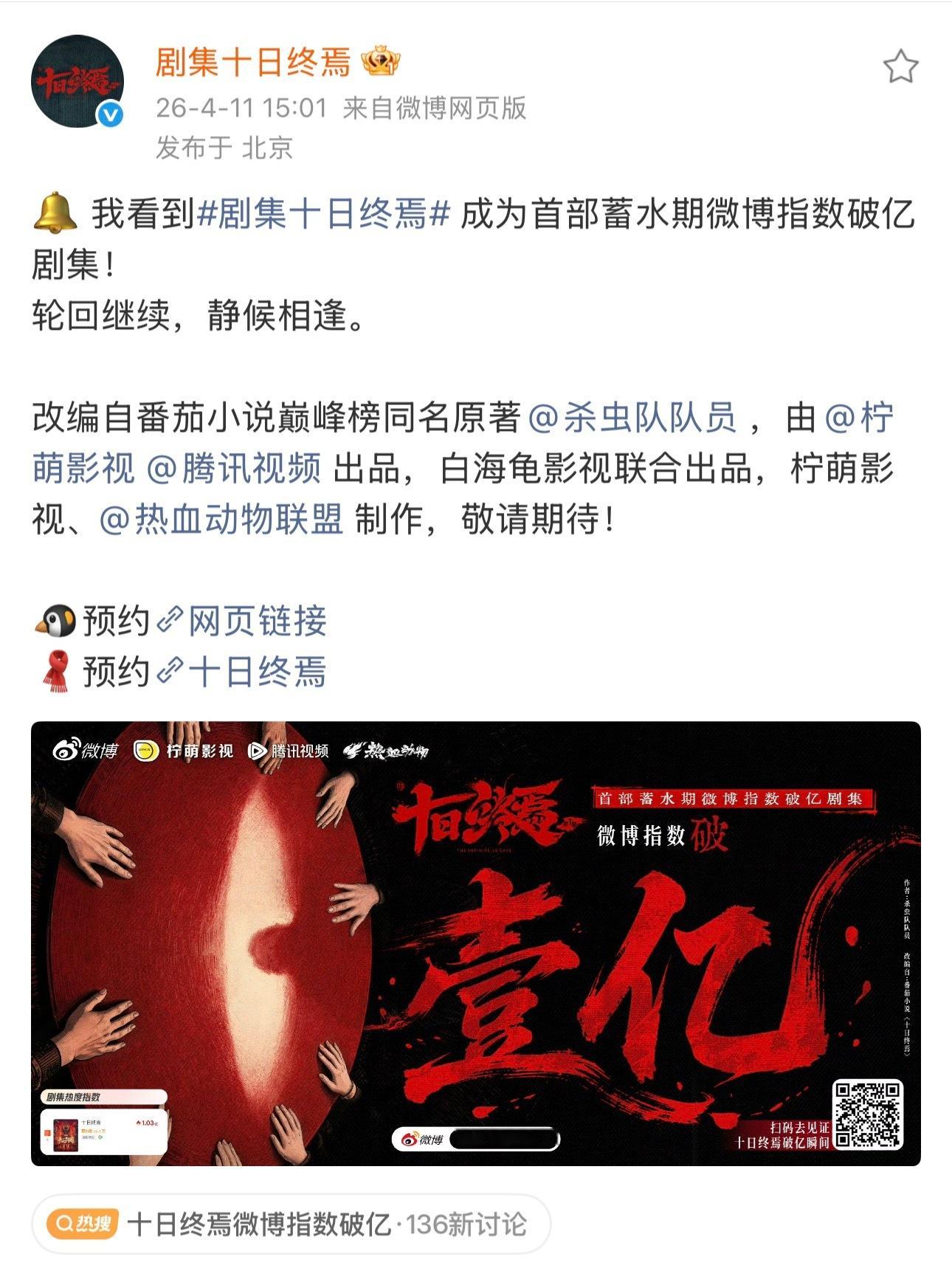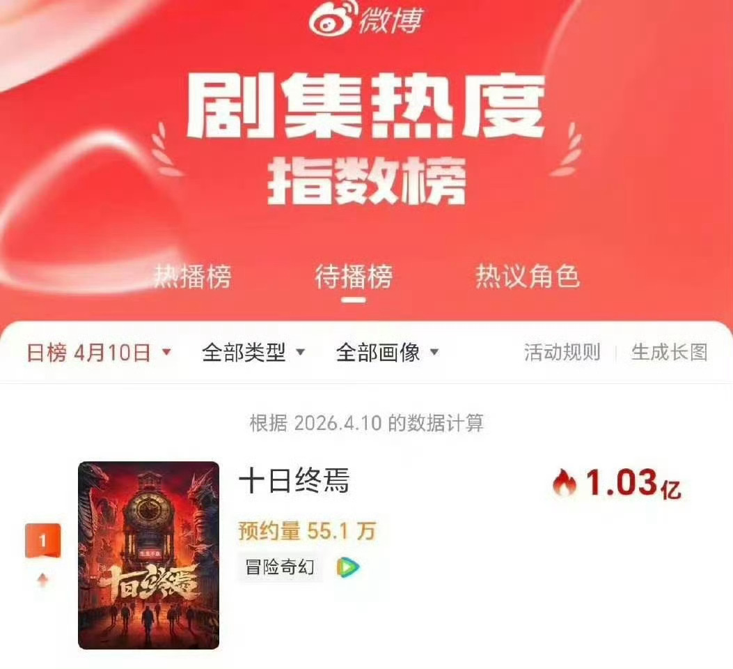 十日终焉微博指数破亿开机第二天就有战报是什么水平微博微信百度抖音各平台各项指数都爆表还上了一把世趋,你就说牛不牛吧!