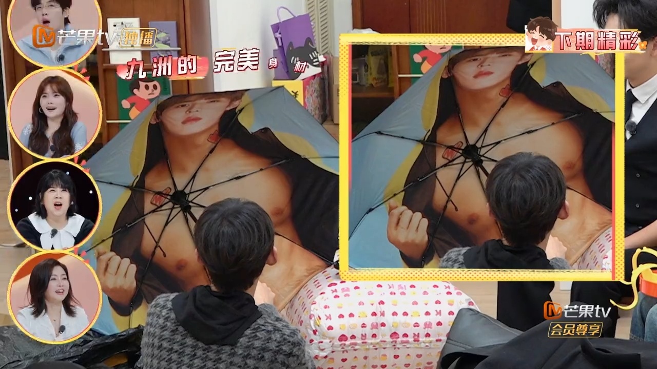 唐九洲一开伞被自己迷晕了我家那小子 唐九洲收到何运晨的定制伞,一打开全是腹肌照,当场笑到不行,还吐槽眼睛被辣到。知道是特意定做的,立马给了个夯,这礼物也太用心了。