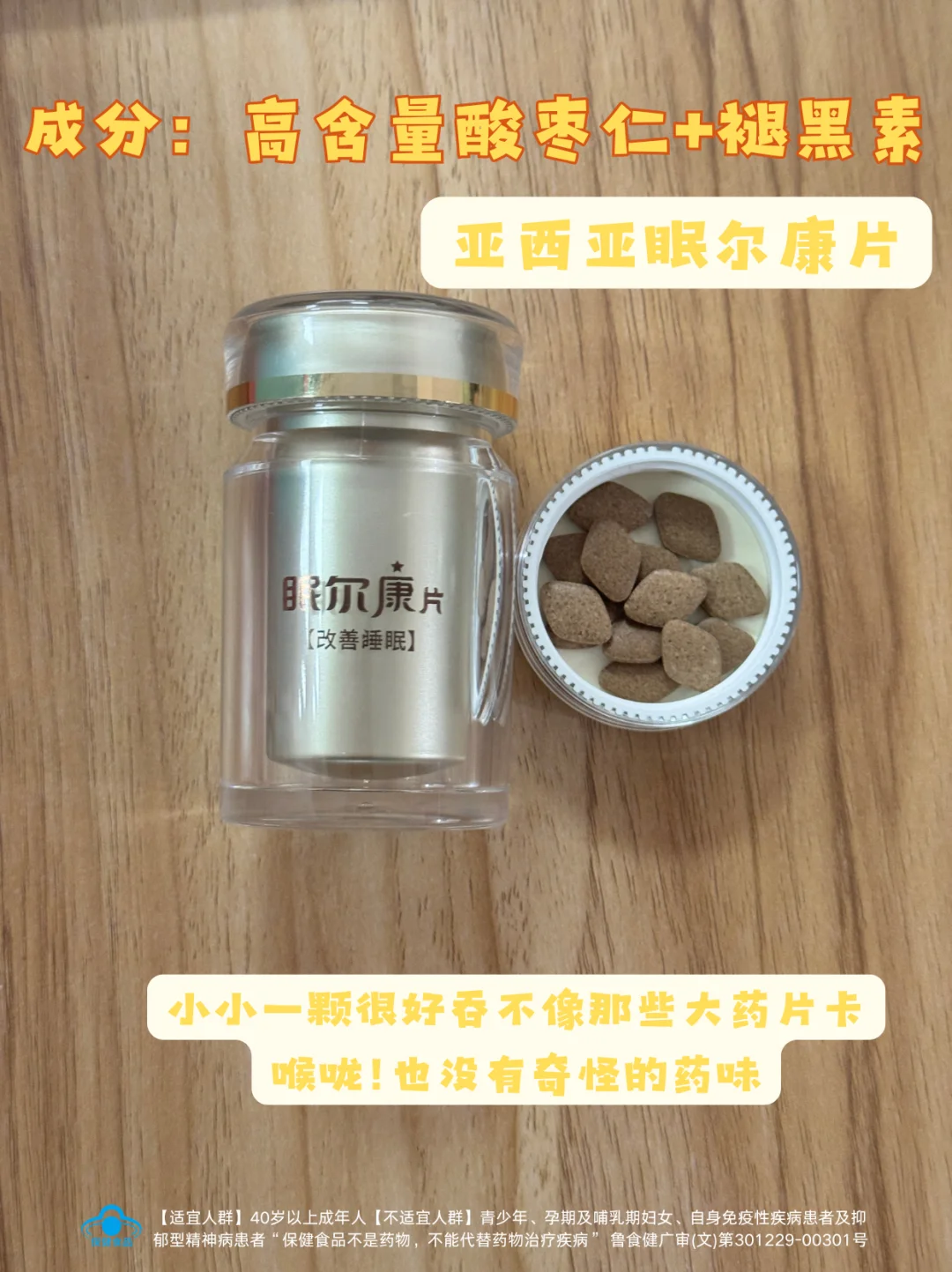 每片含3mg褪黑素和高浓度酸枣仁提取物,总皂苷含量高达5.28%。