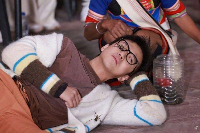 邓超脸上长蜘蛛了 超哥也算是见过大风大浪的人了,这样的惩罚环节也可以轻松做到面不