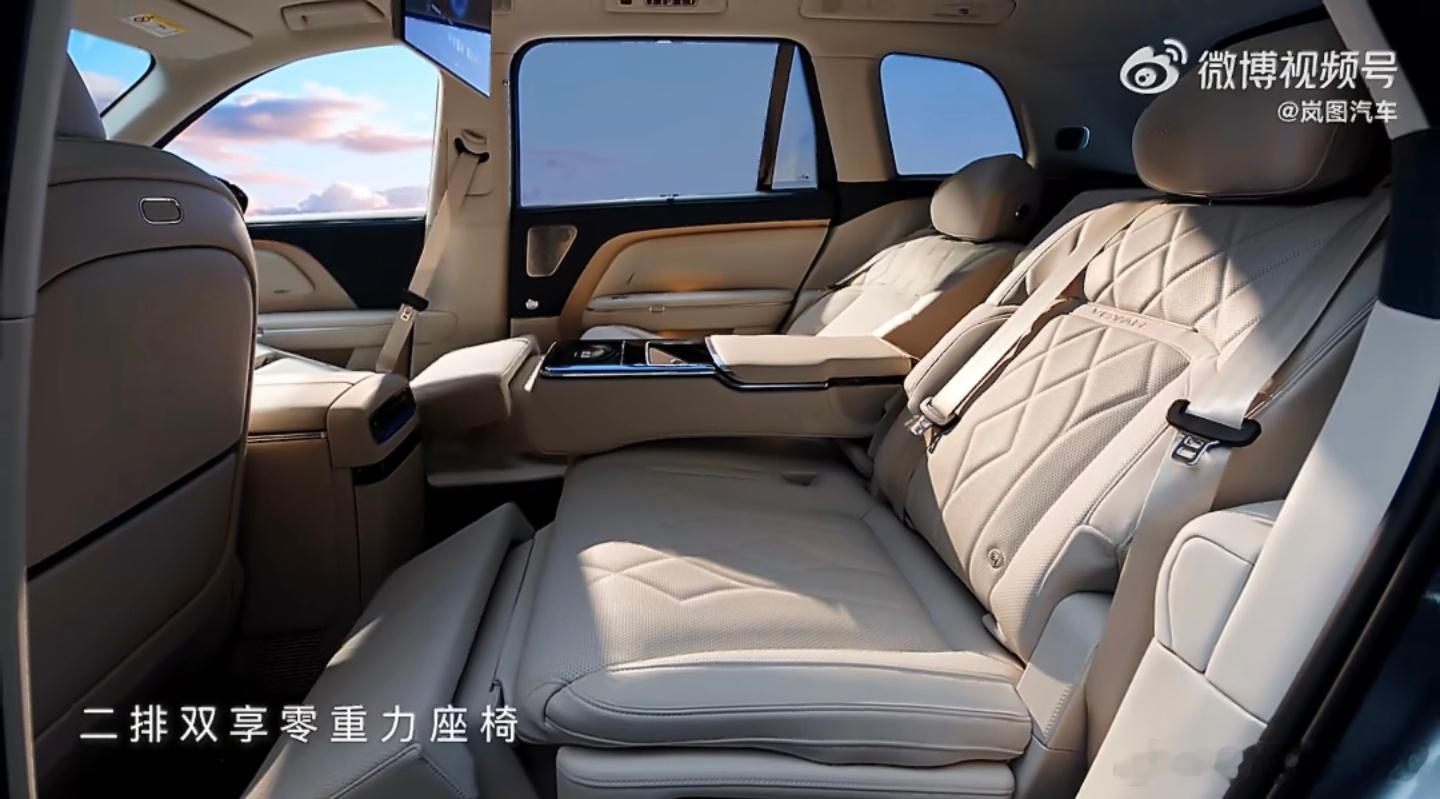 岚图泰山X8大五座,但后排两侧座椅的能力丝毫不比大六座的中排差,零重力、机械按摩
