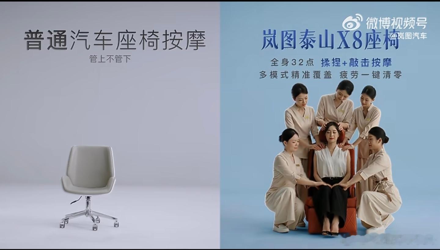 岚图泰山X8大五座,但后排两侧座椅的能力丝毫不比大六座的中排差,零重力、机械按摩、32点按摩
