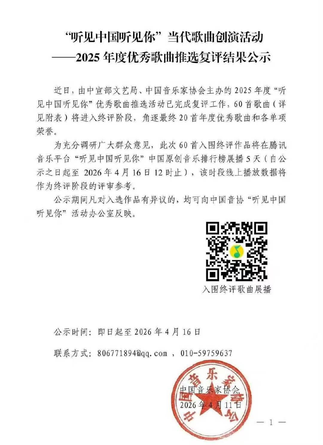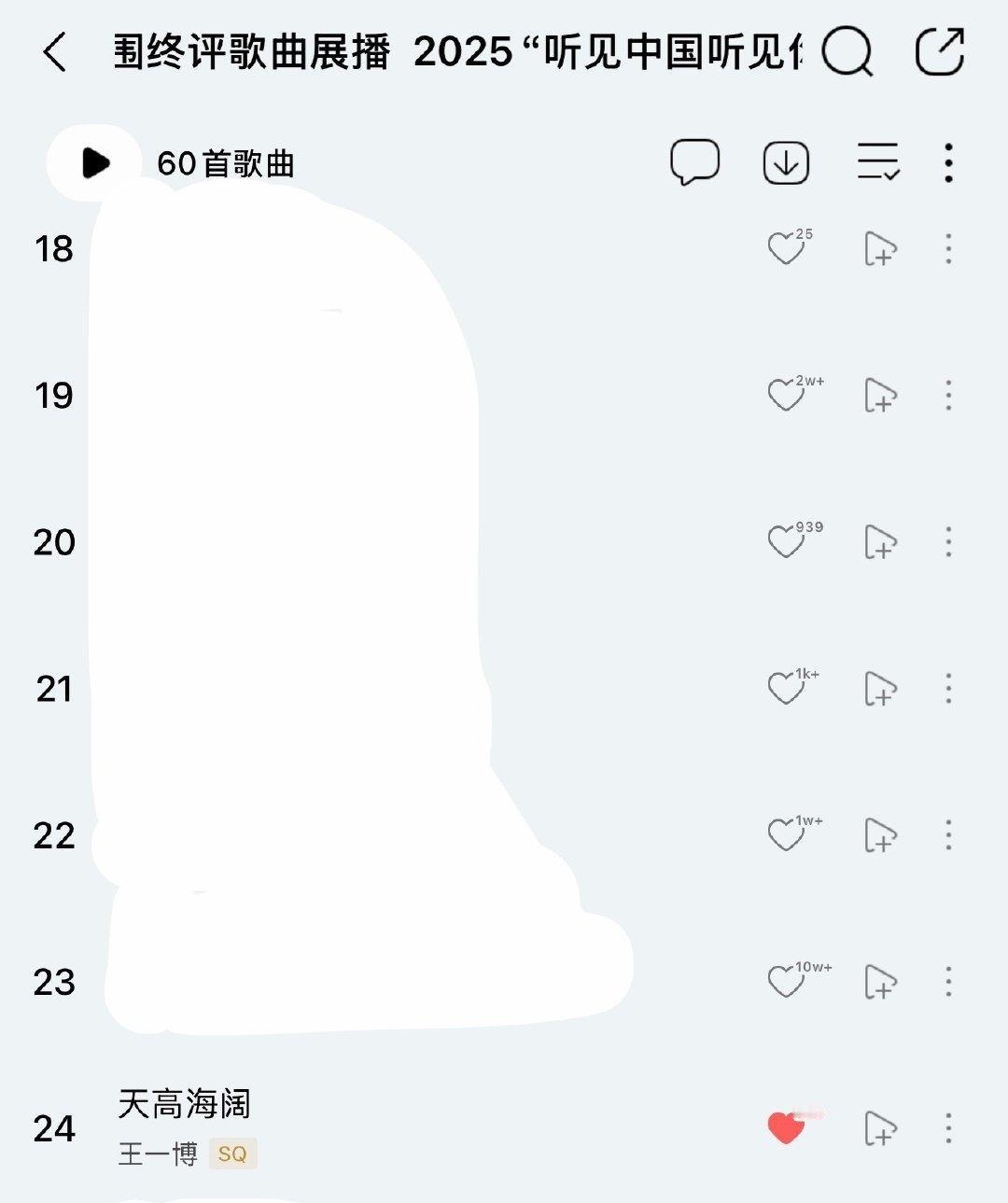 王一博《天高海阔》入围中国音协2025"听见中国听见你"优秀歌曲推选,将角逐最终年度优秀歌曲和各单项荣誉。现在QQ音乐中国原创音乐排行榜展播(至2026年4月16日12时止),该时段播放数据将作为终评评审参考。