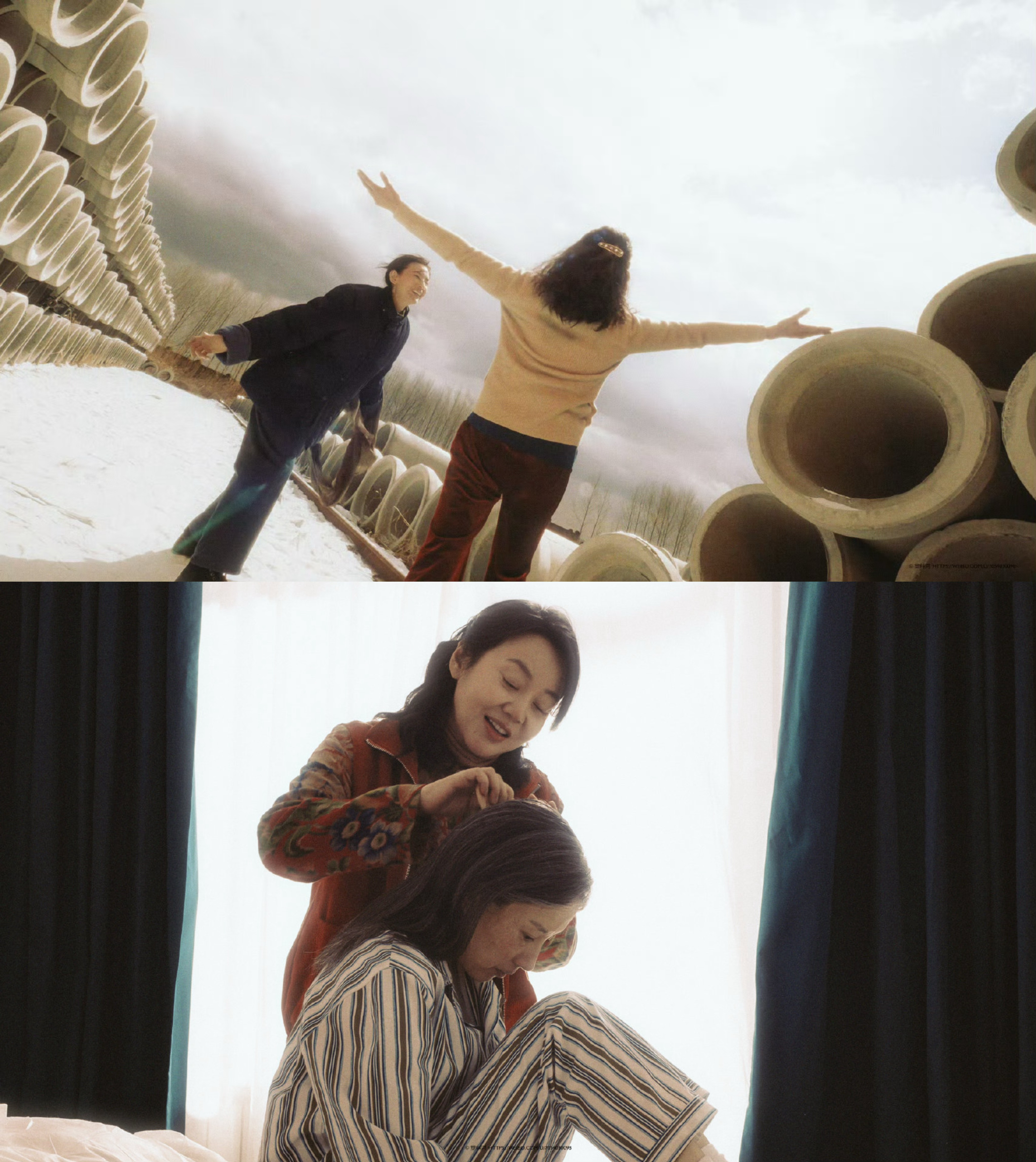 同样,杨阳也很擅长用镜头语言对女性关系进行诠释,比如任小名跟任美艳之间,是母女、是爱恨缠绕、对抗与共生。所以拍对抗时,近景对冲、脸对脸,让我们看到何为尖锐、刺痛、窒息的爱。而拍代际传递则使用相似构图动作、相似光影,让我们看到母女之间,血浓于水的羁绊与镜像。是女性的成长创伤会遗传,同样,那股力量、那股倔强也会遗传。