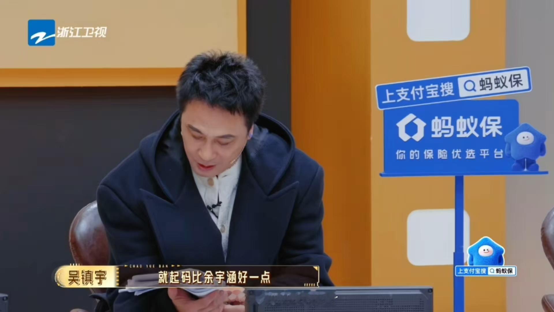 黄朔才艺展示完,吴镇宇评价“起码比余宇涵好一点”。黄朔的表情从不敢相信到得意忘形只用了一秒:“真的吗?余宇涵你在看吗?我只能说还好~”哈哈哈哈这弟弟太会了!黄朔余宇涵你在看吗吴镇宇说黄朔比余宇涵好