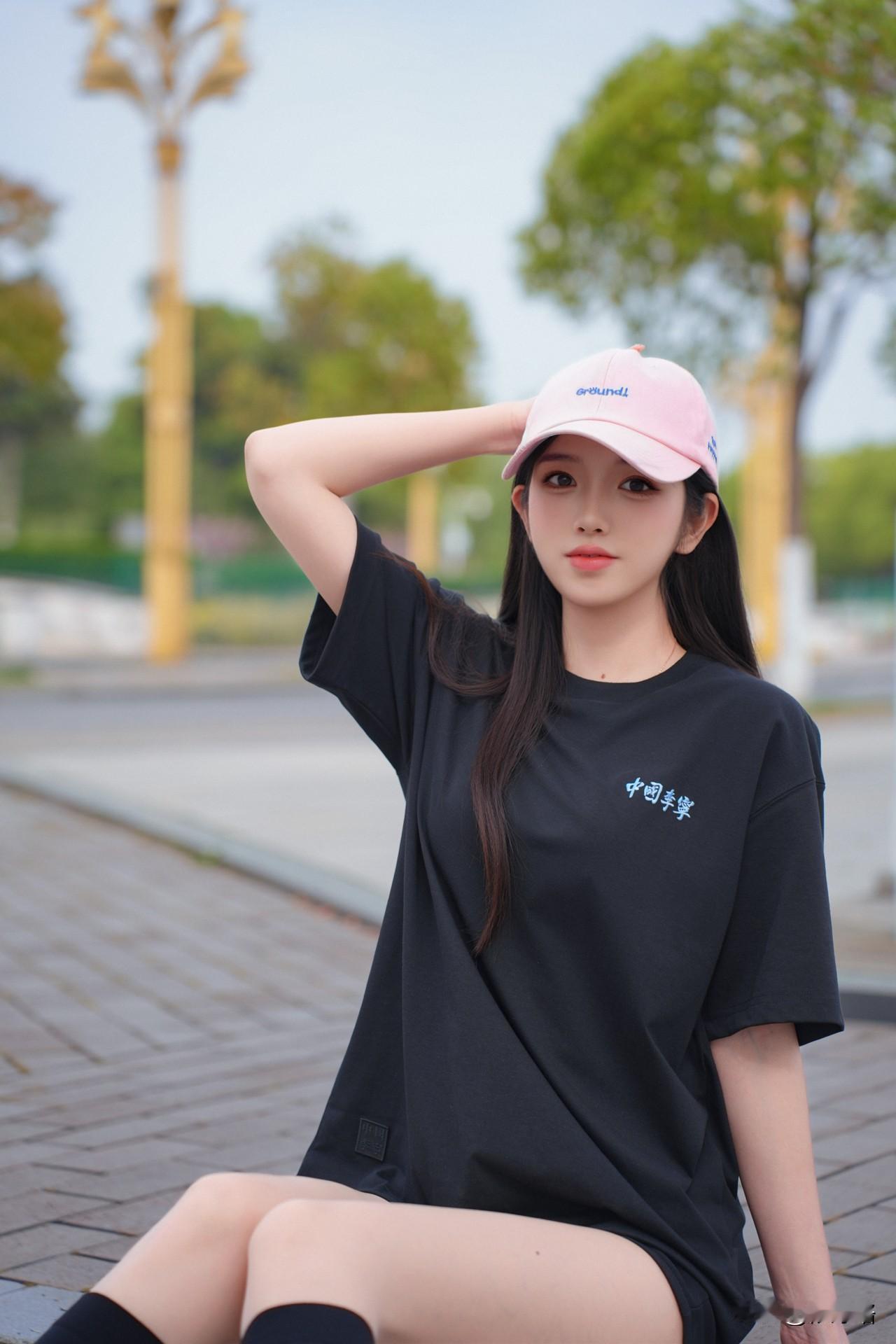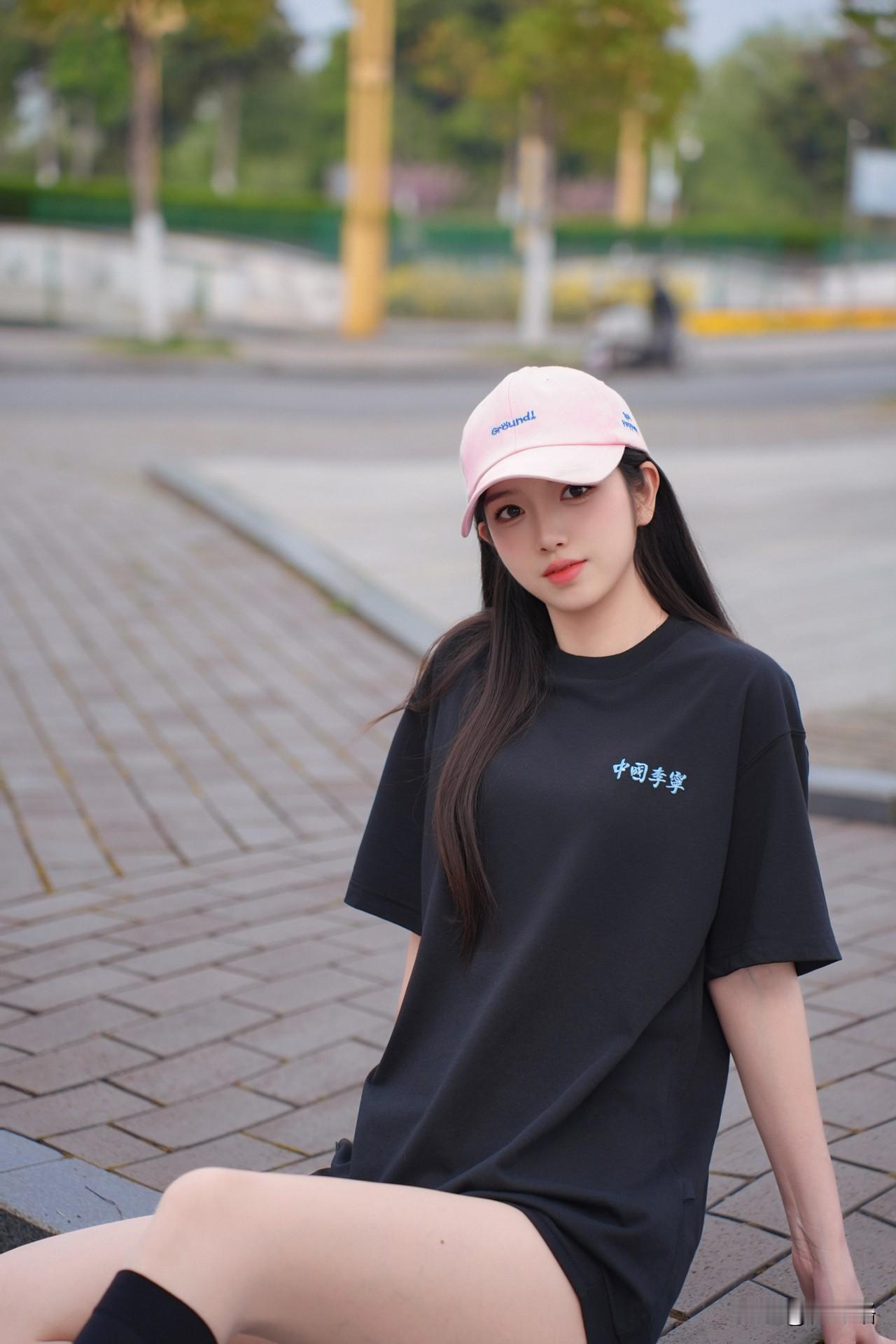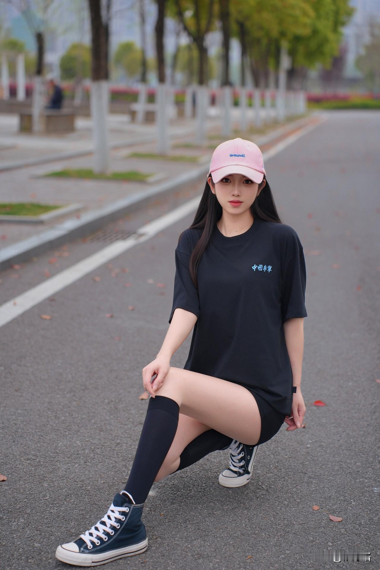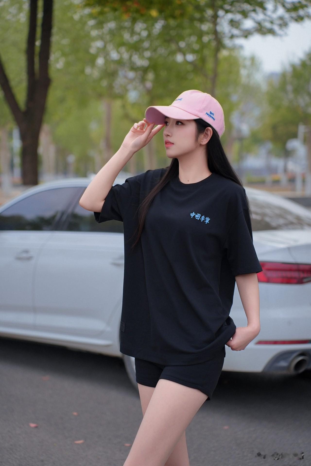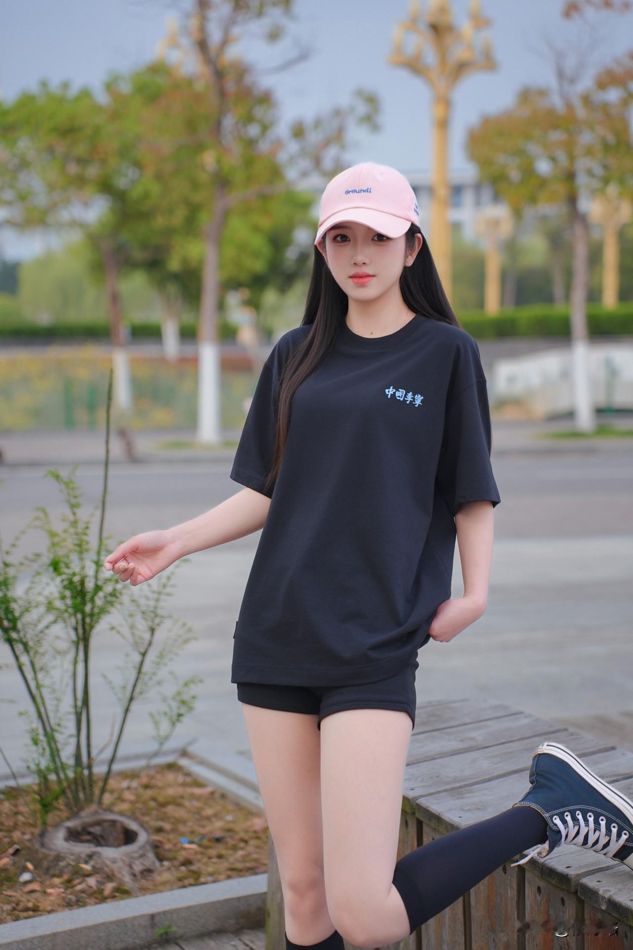这件黑色“中国李宁”T太绝了!宽松版型藏肉又慵懒,胸前小蓝标简约又有设计感,软乎乎的面料穿起来超舒服✨ 搭配同色系小短裤玩“下衣失踪”,腿长直接拉满!重点是粉色棒球帽+黑色中筒袜+藏蓝帆布鞋,甜酷感一下就出来了,小腿细得像开了滤镜~