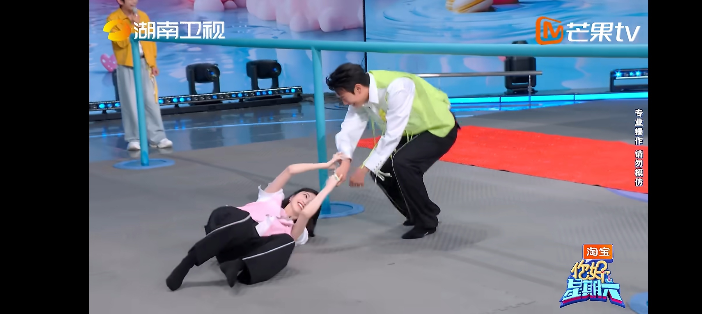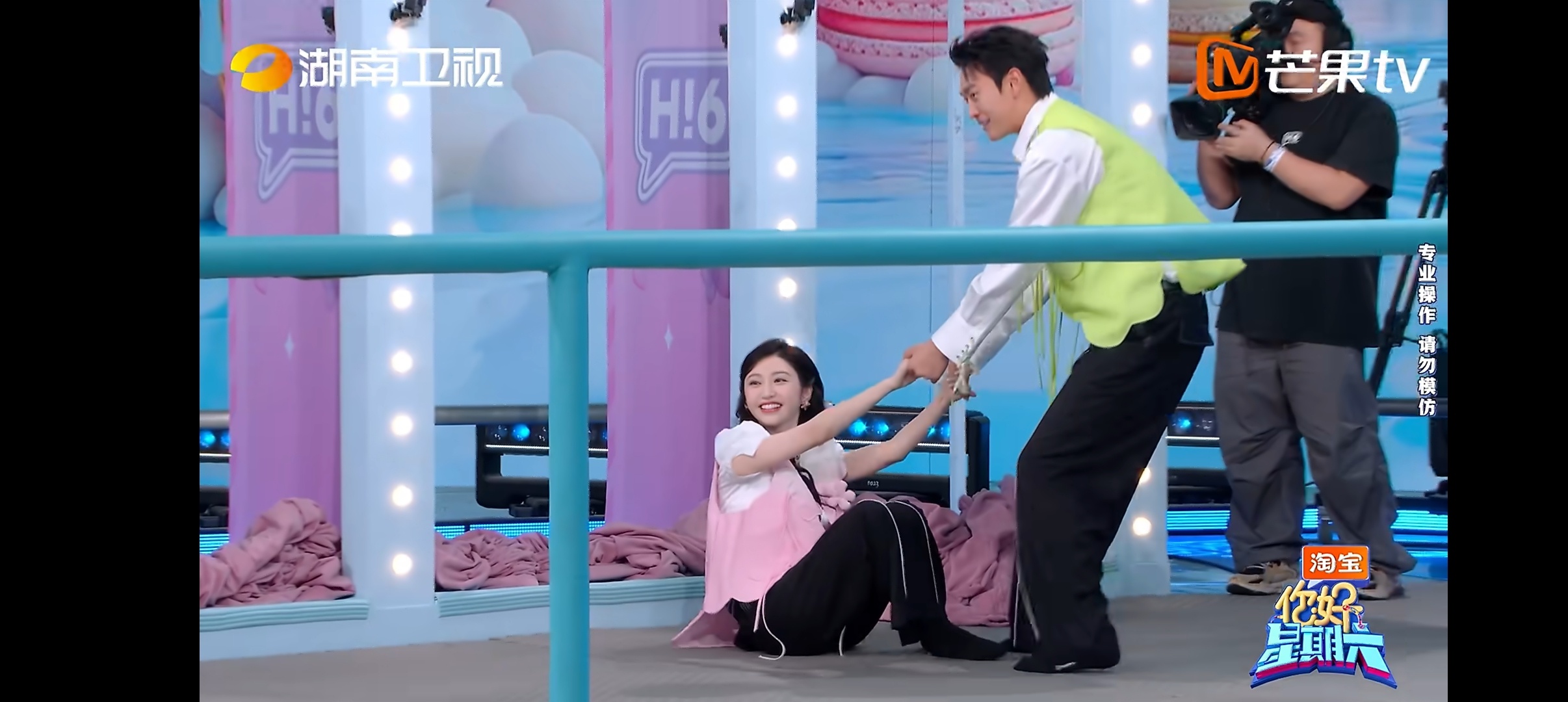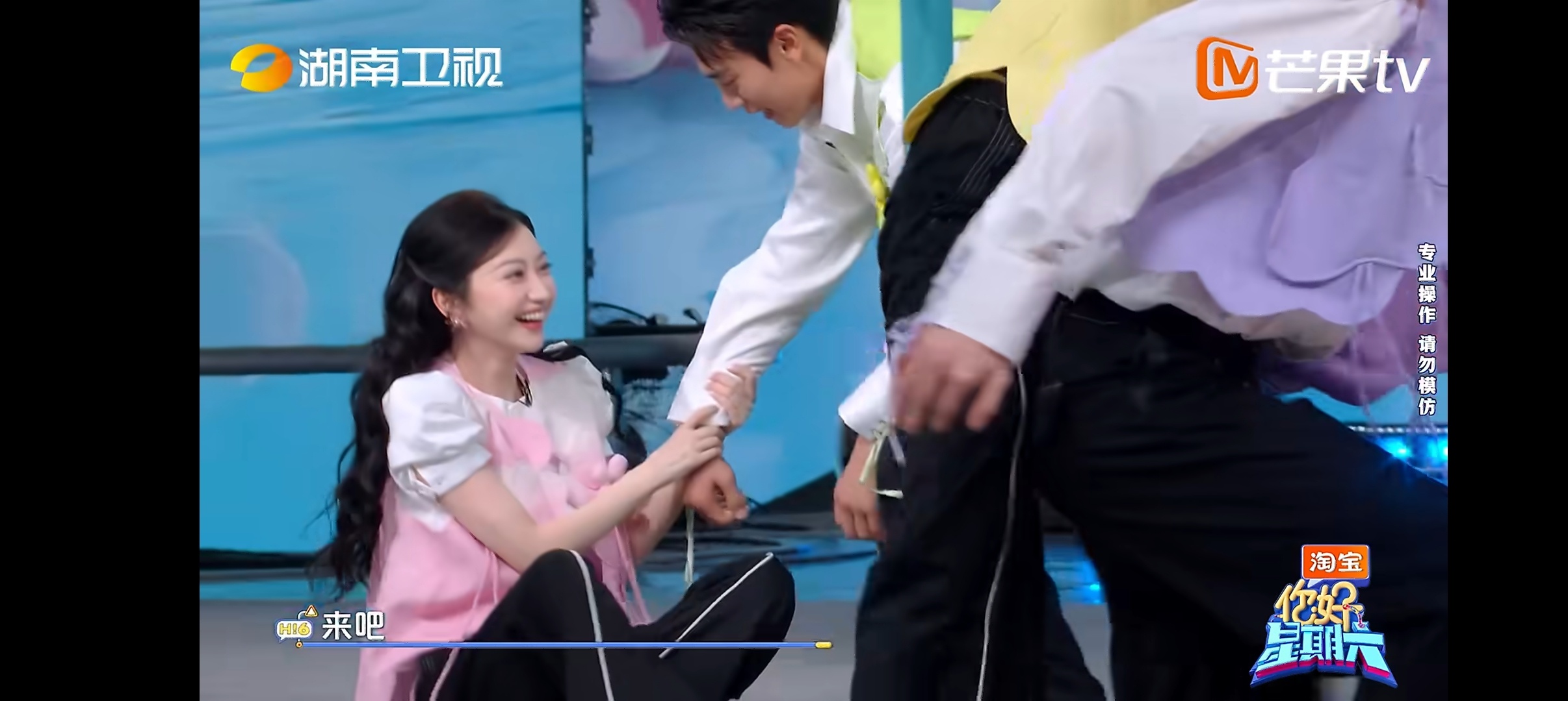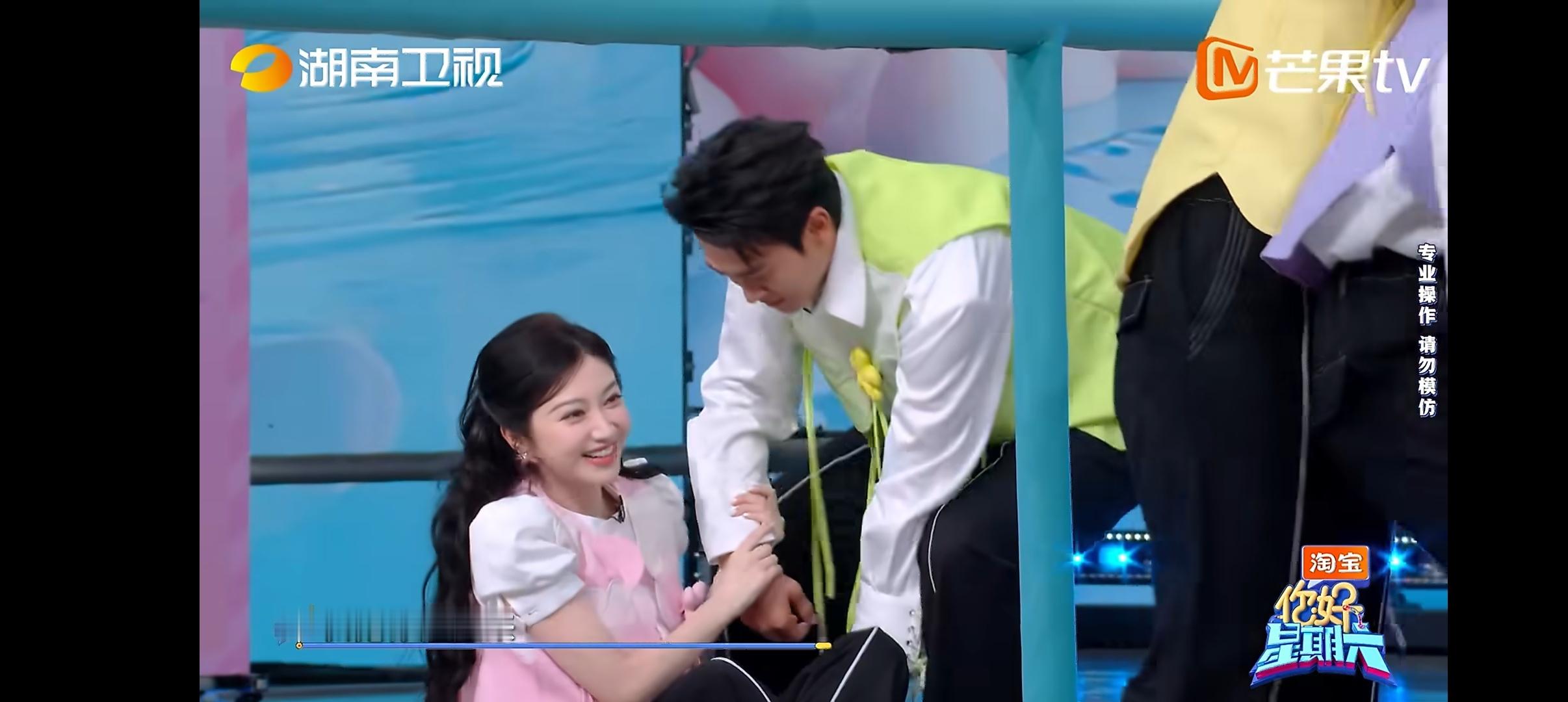 景甜是会捣乱的 哈哈哈景甜玩游戏好拼,为了阻拦不同队的王天辰,各种捣乱,关键一直笑盈盈的,王天辰想努力但无从下手手足无措 王天辰手足无措具象化了你好星期六
