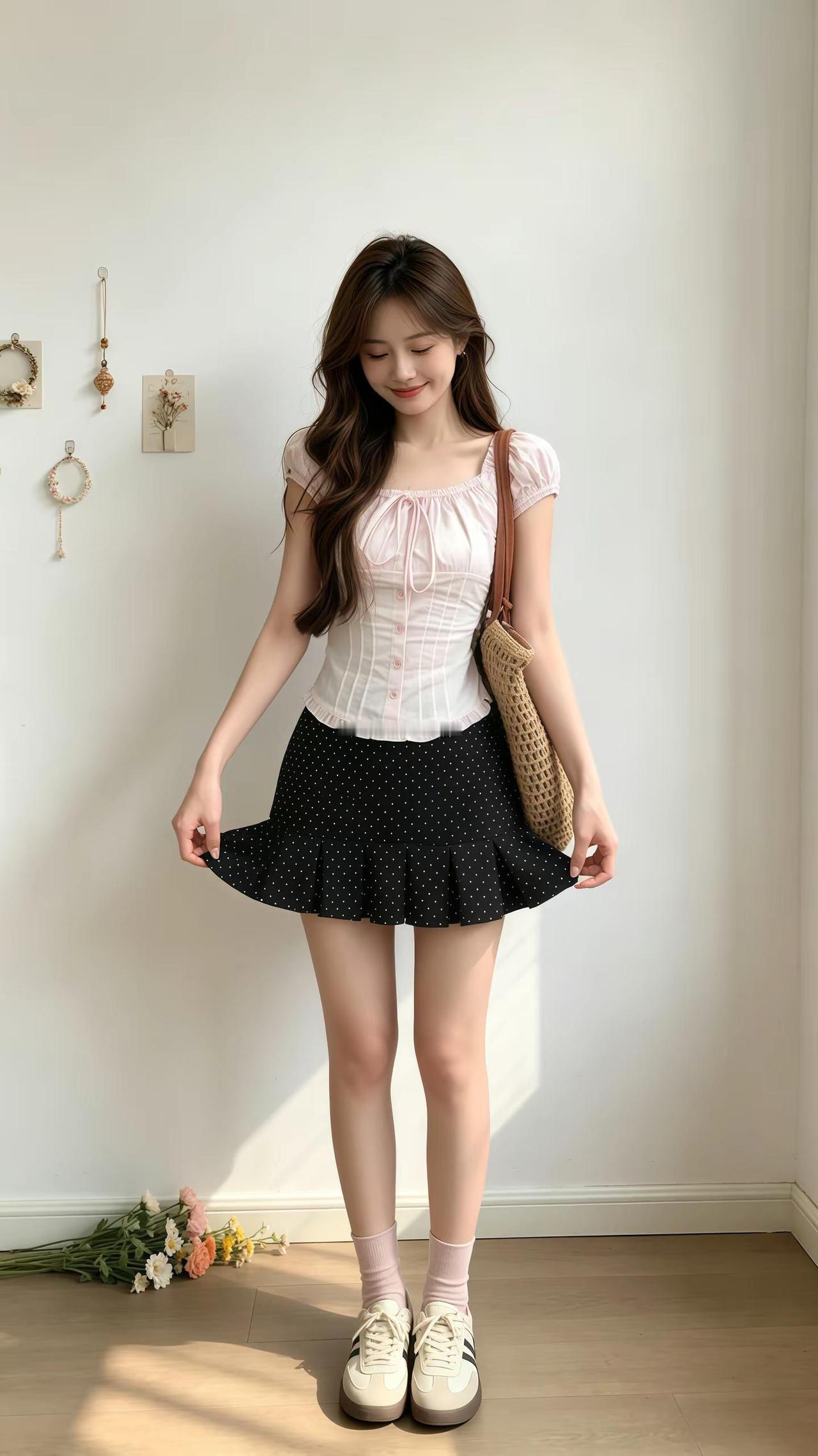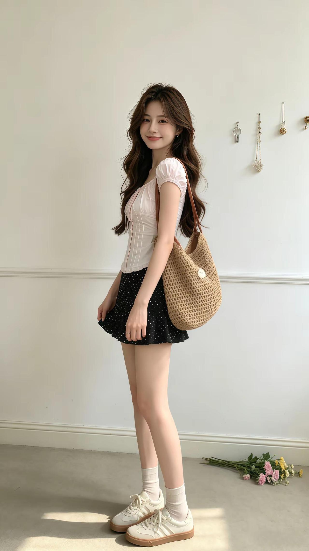清新夏日穿搭,白色衬衫+米色短裙,优雅迷人!🌞👗👠