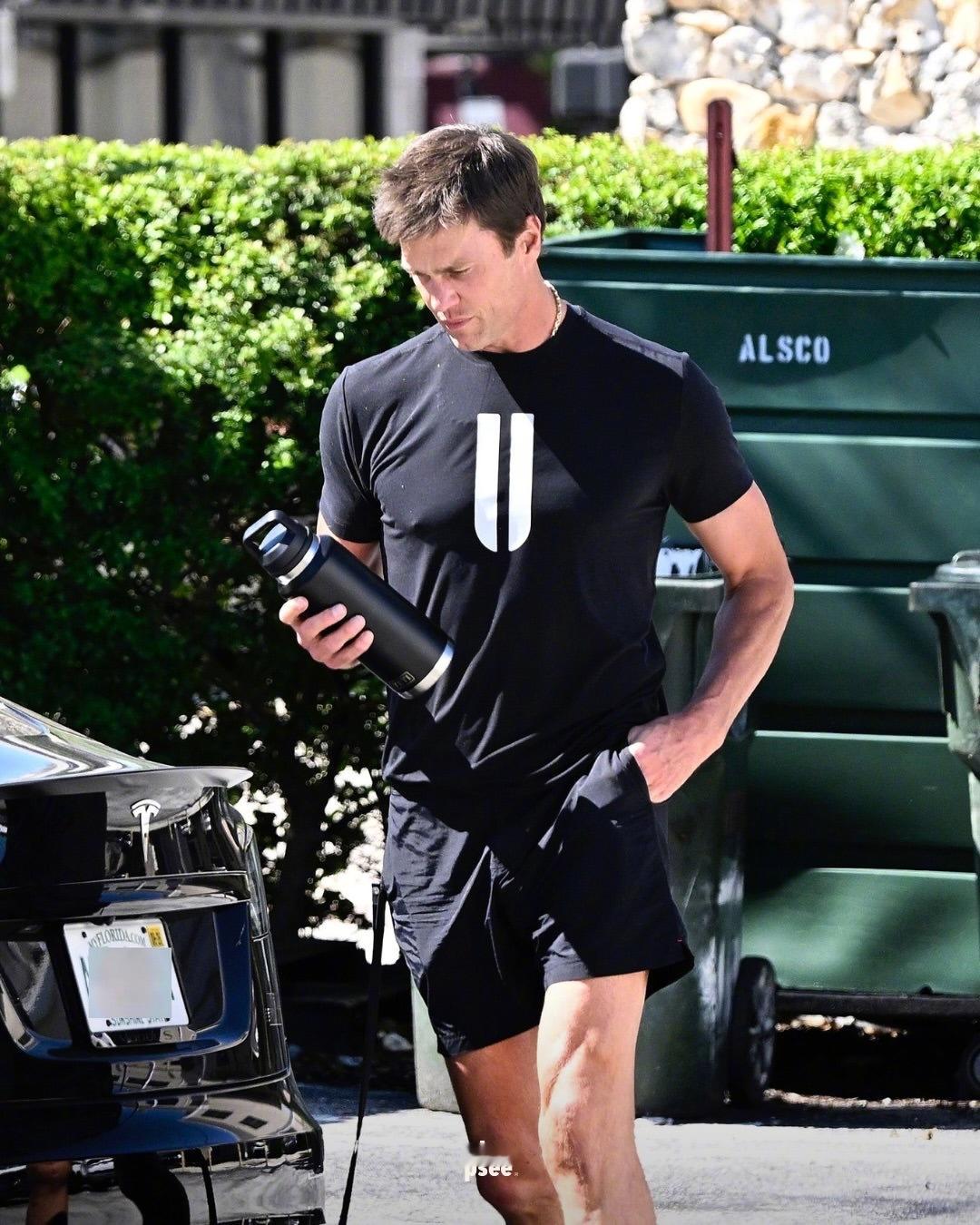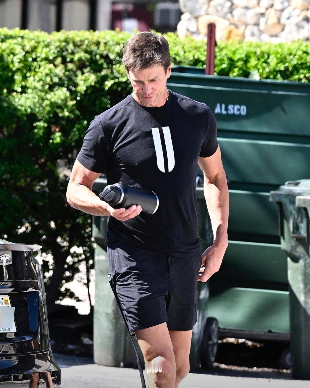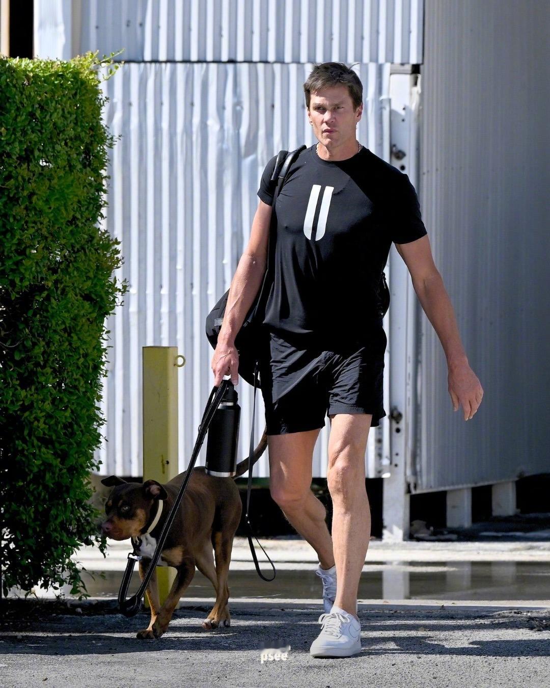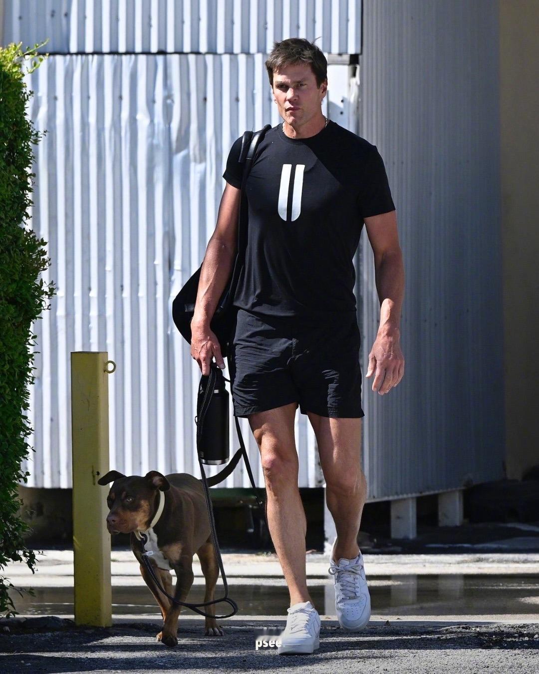 运动员就是不一样啊,退役后只要保持运动,认真管理身材,就比同龄人看上去年轻不少!在迈阿密外出健身的Tom Brady,带着爱犬Junie离开了Surfside的一家健身房,身穿的是他自有品牌NOBULL的T恤。米拉服饰解析