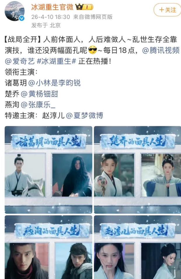 《冰湖重生》播出期间出来发这个,肯定是故意的,大概率是不堪其扰,带着赵丽颖三个大字捆绑的营销真不少,赵丽颖工作室发的都是赵丽颖对楚乔这个角色的理解,大概率是想说明两个楚乔要表达的东西不一样吧,《冰湖重生》发了微博疑似回应(人前体面人,人后难做人;乱世生存全靠演技,谁还没两幅面孔呢),不过很快删了,其实当初片方买这个本子就是想蹭《楚乔传》的热度,选黄杨钿甜当女主,也是为了蹭赵丽颖热度,这没啥好否认的,最近一直捆绑《楚乔传》营销,很多粉丝都不是很满意,不希望大家说《冰湖重生》是《楚乔传2》,不希望赵丽颖被吸血。