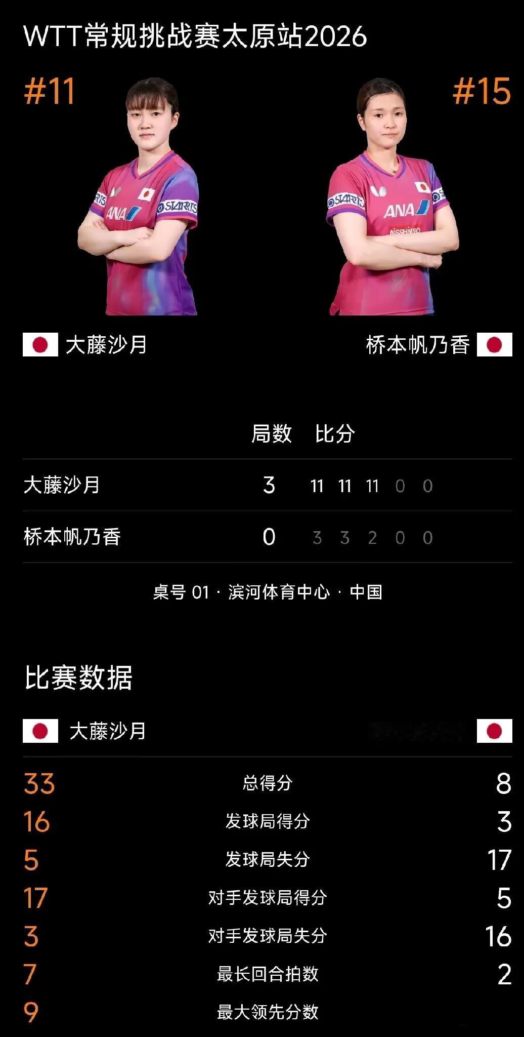 这就是为什么中国人喜欢大藤莎月的原因,看看吧!这样的比分,国乒女队员没有谁能打的出来!