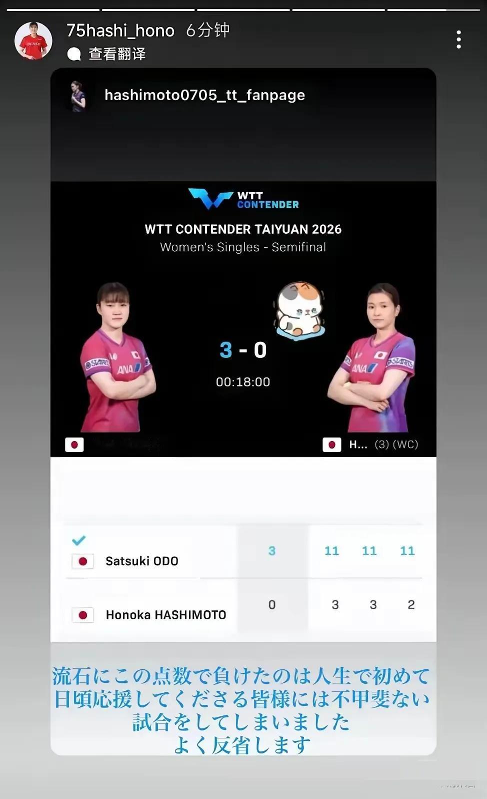 这就是为什么中国人喜欢大藤莎月的原因,看看吧!这样的比分,国乒女队员没有谁能打的