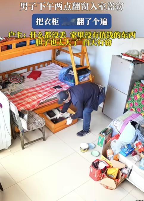 现在小偷都这么猖狂了?大白天入室盗窃,只是没想到被偷的人家比他还穷,导致他空手而归。偷鸡不成蚀把米,又好气又好笑!