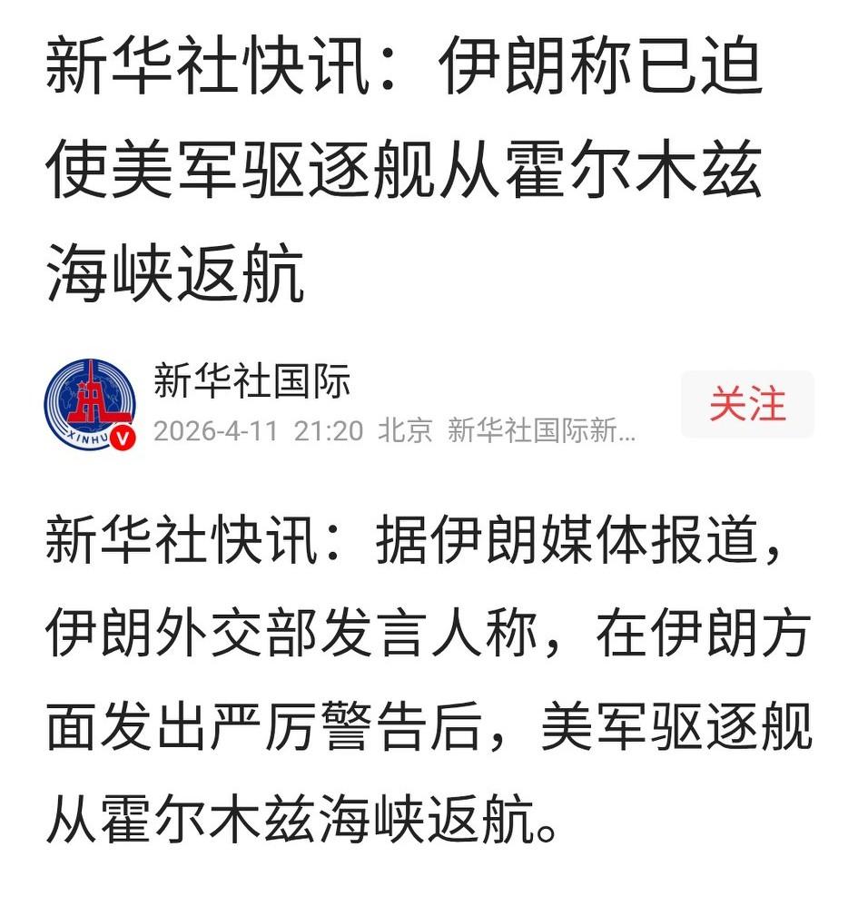 美军舰硬闯霍尔木兹,美伊博弈再升级!2026年4月11日,霍尔木兹海峡的浪