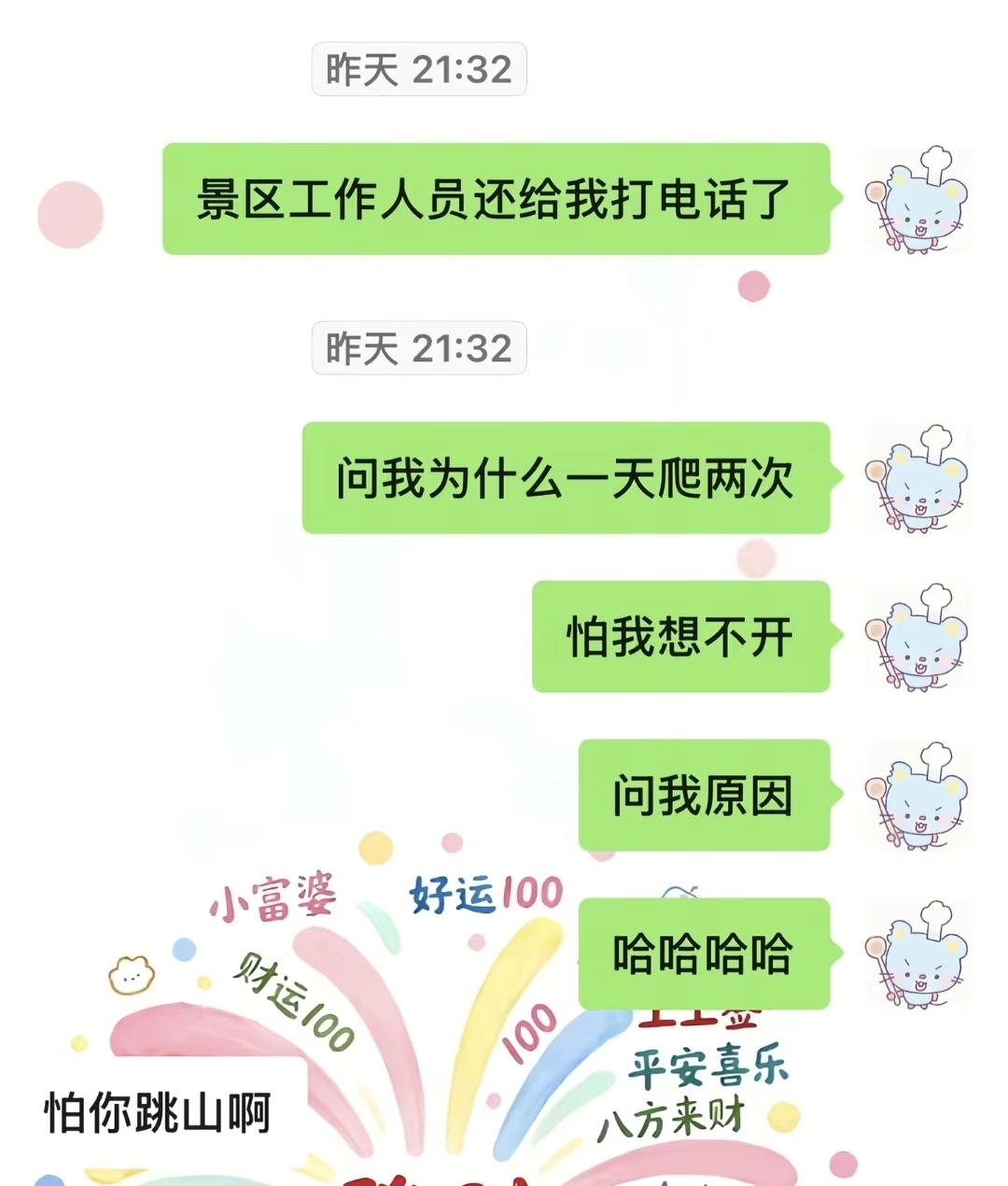 事因:卢女士先是3号晚上夜爬华山,清晨才下山,她觉得可惜没能打卡到长空栈道,心里满是遗憾。不甘心的她当即决定再次购票进山,没想到刚入园,就收到了华山景区工作人员的短信问候,工作人员仔细询问她一天爬两次华山的原因,确认是否结伴同行、身体状况如何,贴心叮嘱注意体力,担心她登山途中出现安全问题。