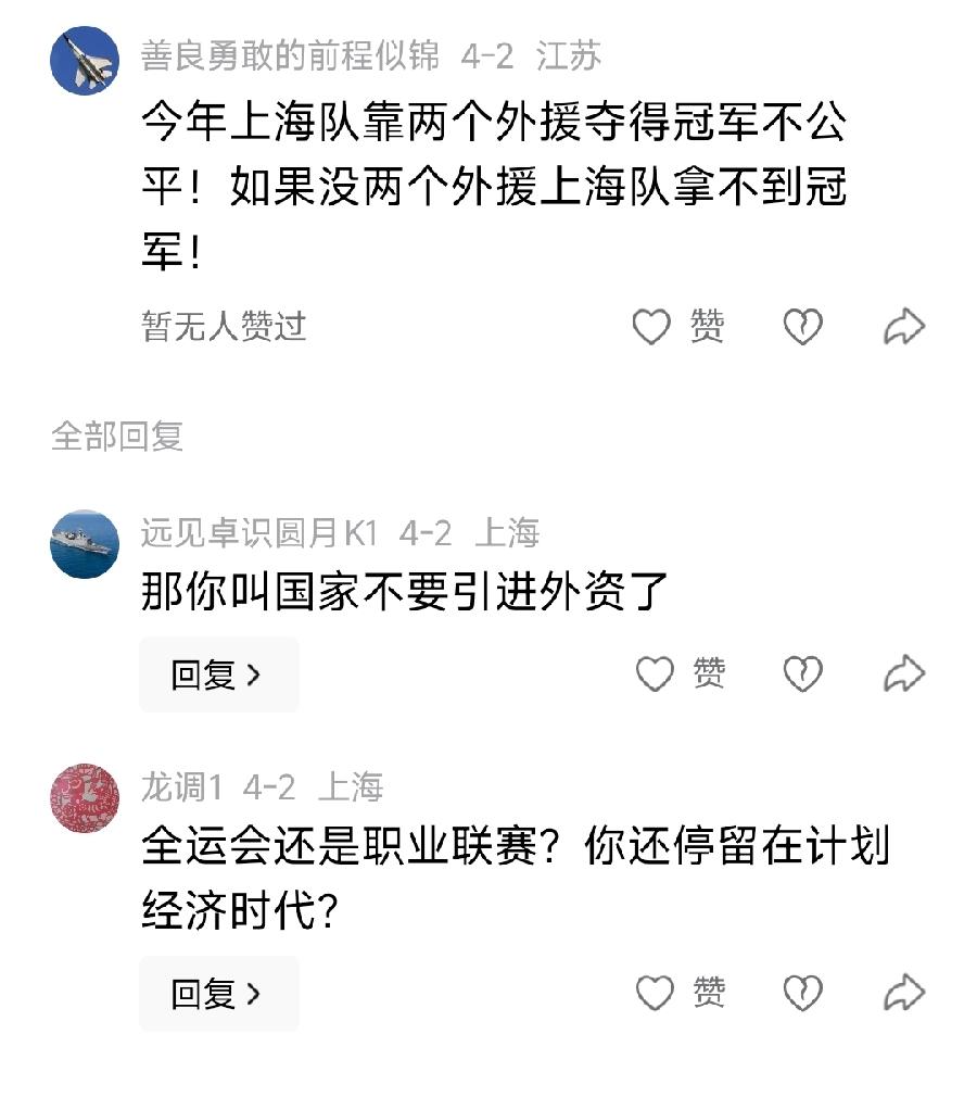 原来所谓的江浙沪“一家亲”,无疑就是某域球迷强行绑架浙沪球迷,专门为了对付天津女排的。当江浙沪发生利害关系时,就别提什么“一家亲”。尤其是一些极端球迷,又会拿“外援”说事儿。他们最常说的就是:“没有两个外援,上海女排什么都不是”;“上海女排没有外援屁都不是”。当然了,都是“一家亲”了,人家苏迷骂“自己家人”,你沪迷也别上心。人家在家里和亲人之间有利益关系时,连亲娘老子都一起“问候”呢。何况你沪在苏迷眼中,无非就是个“远亲”。