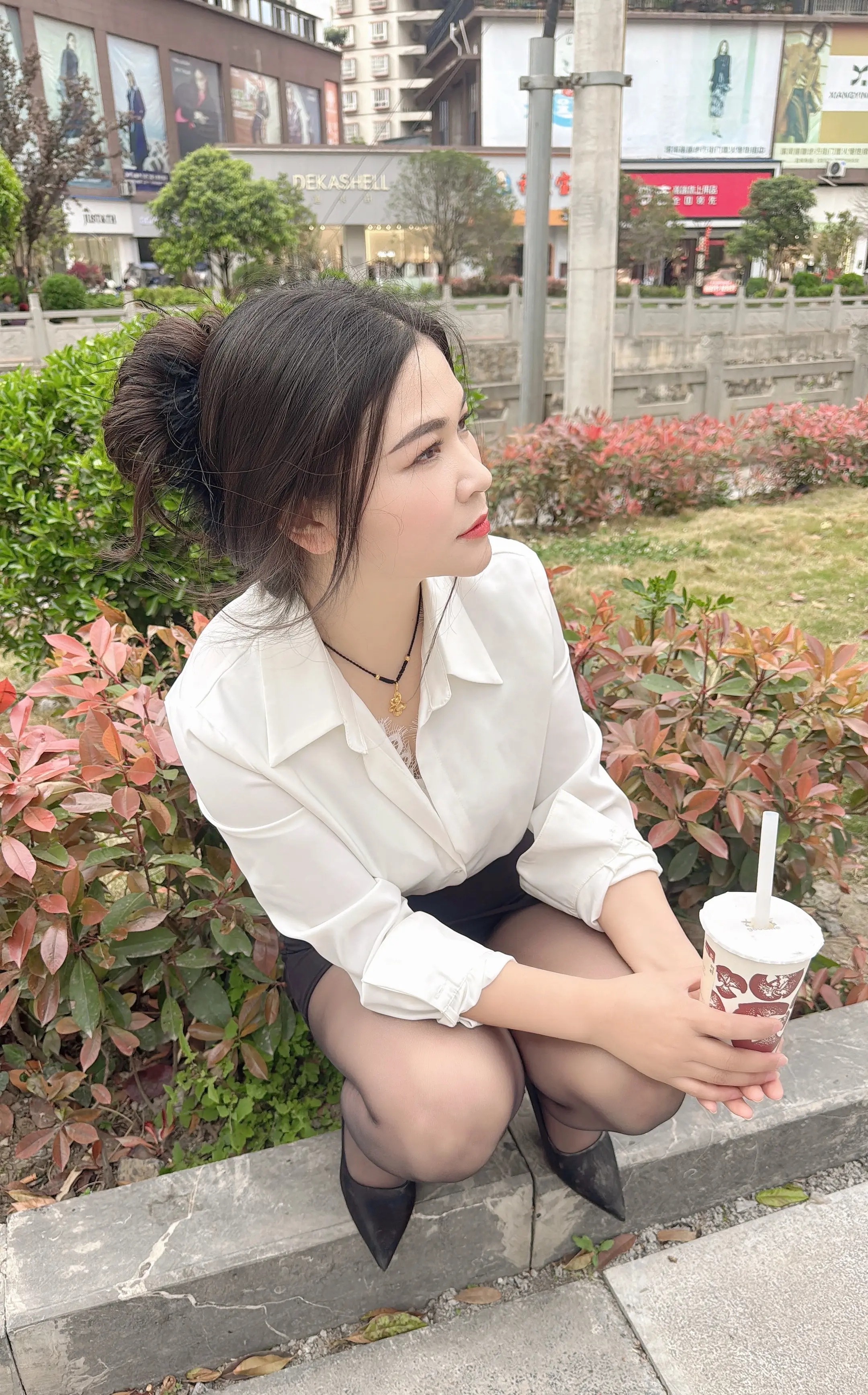 温柔甜美的白衬衫搭配黑色短裙,清新自然,气质满分!🌸💕