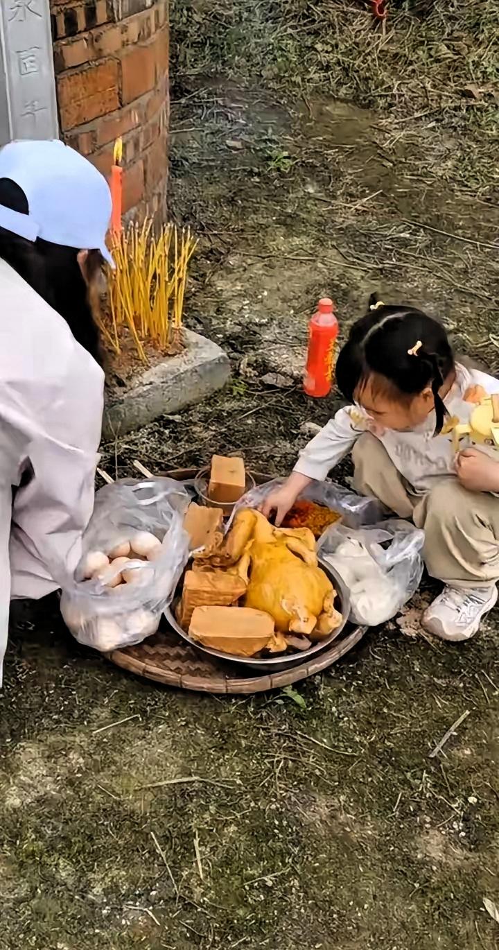 真是让人哭笑不得!广东某地,清明时节,女子带女儿去给老祖宗上坟,精心摆放好祭品,上香、磕头,怀着敬重之心缅怀先辈。仪式结束后,她转头却发现,年幼的女儿已经在一旁悄悄吃起了祭品,孩子全然不懂相关礼仪,只是单纯被食物吸引。