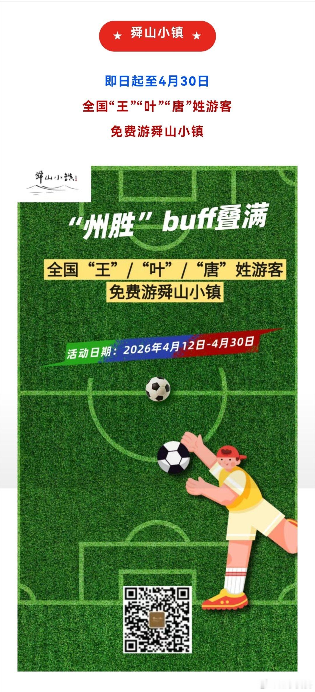 ★舜山小镇★即日起至4月30日全国“王”“叶”“唐”姓游客免费游舜山小镇