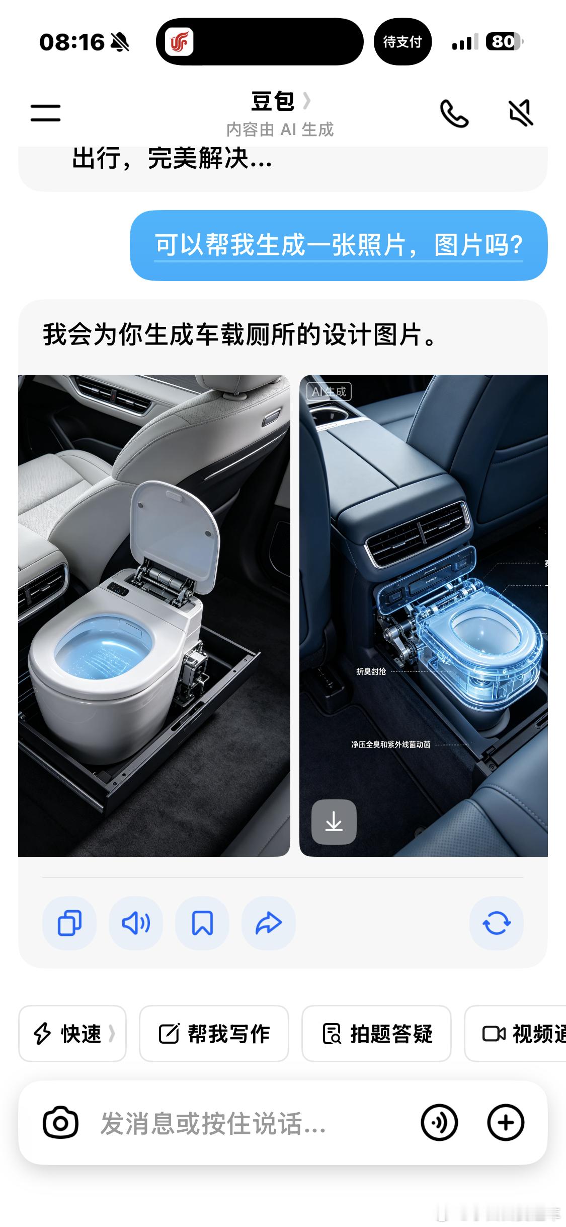 赛力斯将推出车载厕所图1,我一不小心看成钢琴了……图3是请豆包帮我生成的一张图片