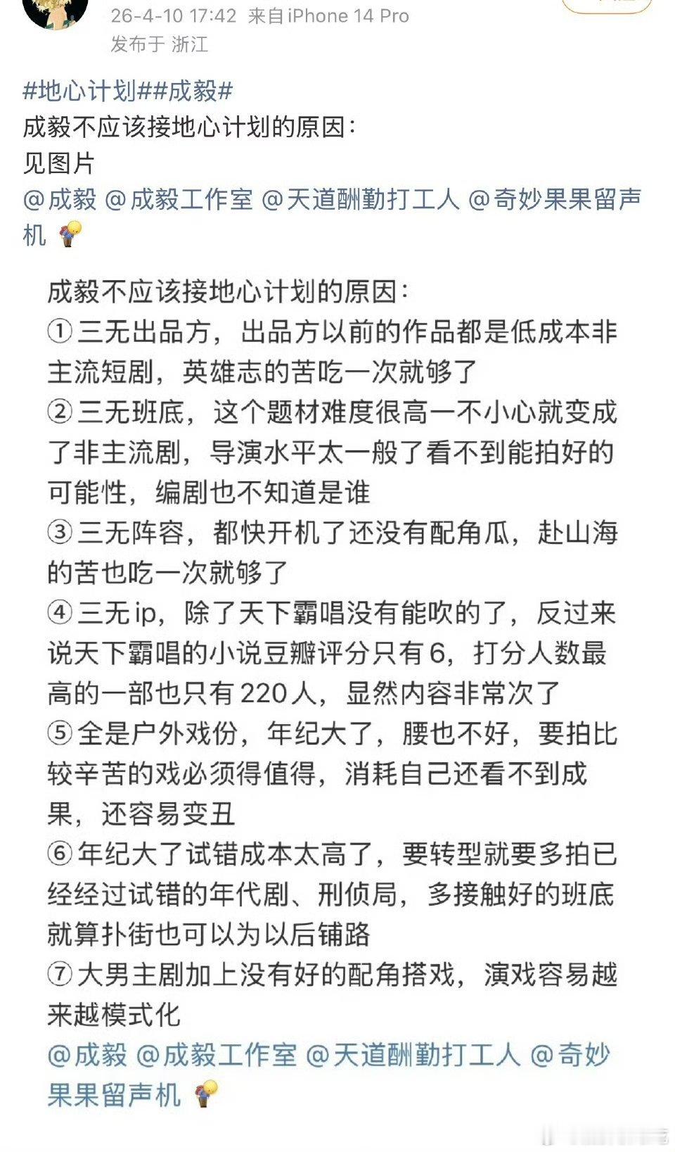 原来又掉饼了啊,最近传的地心计划被粉丝以三无抵制,之前传的饼《朝无念》又传别人,