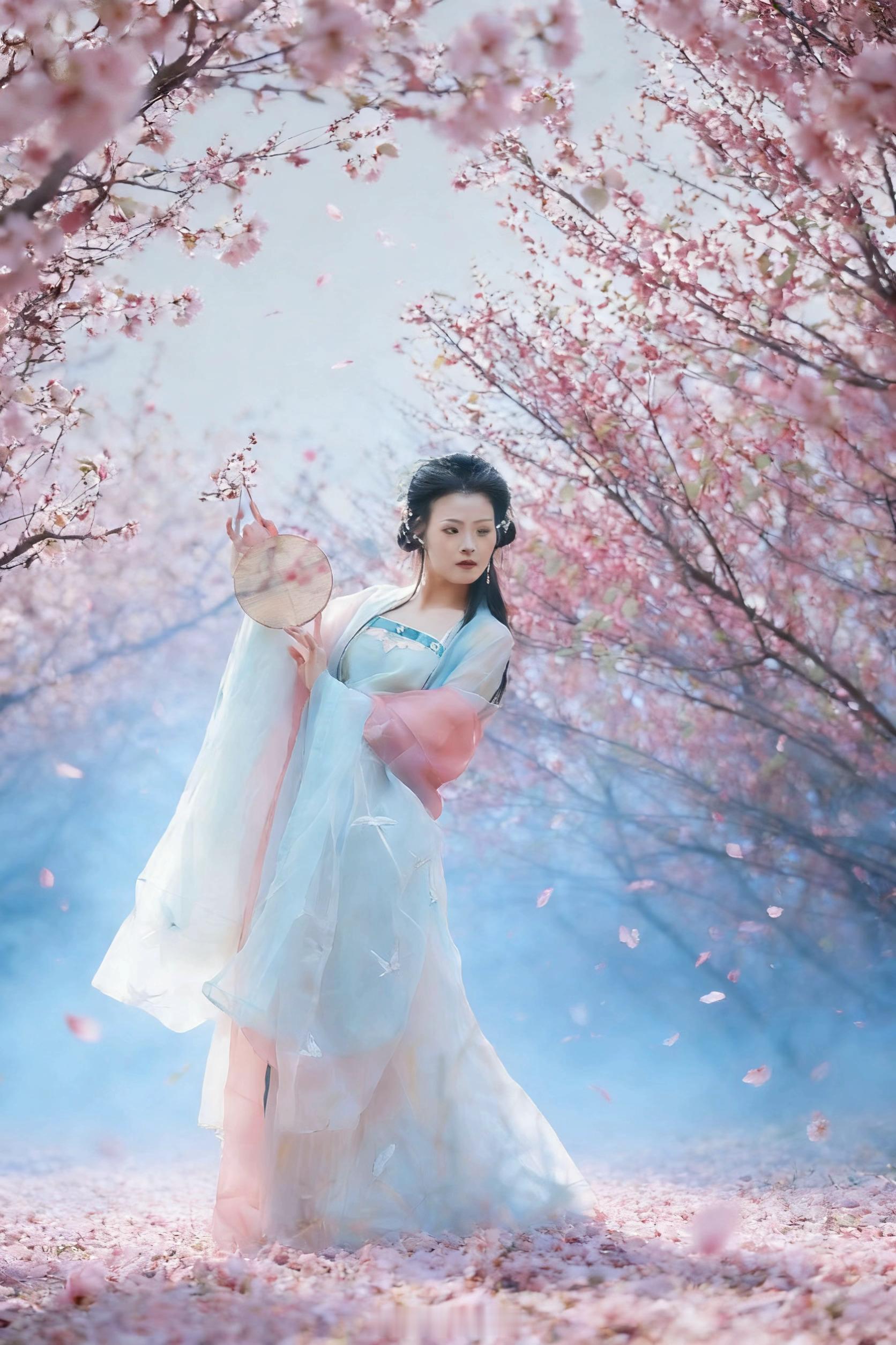 古风美人轻纱薄雾间品茗,如梦似幻轻纱美人图古风浅笑写真轻纱古风照古