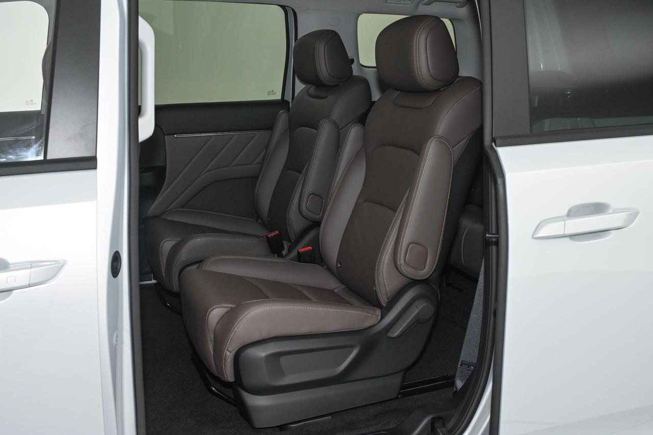 第二排是真能打。两个独立座椅,皮子厚实,扶手能调高低,腿托一拉出来,我妈抱着孩子坐那儿,说比家里沙发还放松。过道特别宽,23厘米,我侧身走过去接后排孩子,不用挪椅子,老人也能稳稳进来。就是调节得用手,但拧几下就到位,不费劲。