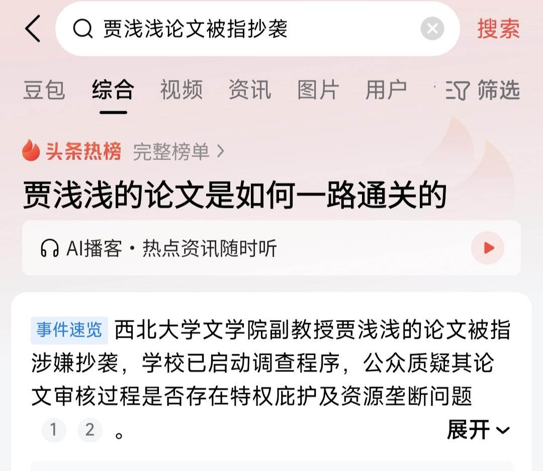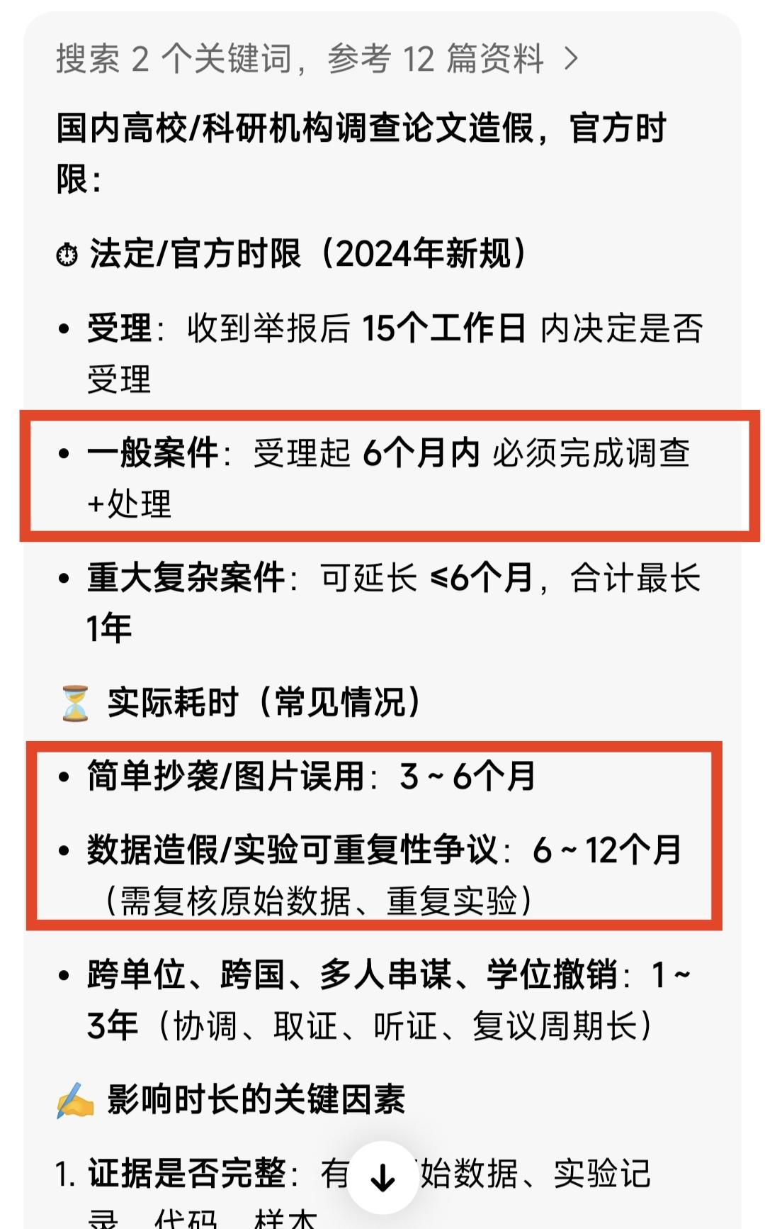 网友真的想的太简单了,确定学术论文是否作弊抄袭,真的是一件非常复杂的过程。刚才我问了豆包,就算是一般的学术论文剽窃抄袭,要确定公布也要三个月时间到六个月时间。而经过这几个月的时间,这件事情的热度也就慢慢下降了,大家也就慢慢淡忘了。当然,这三个月和六个月,都是指上限不超过三个月六个月,最快的也可以是三天六天。