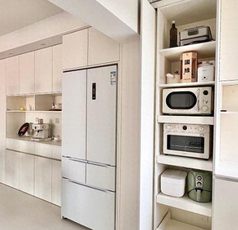 她家柜子80%是开放格,摆满了摆件、书、相框,落灰擦到哭。正确做法:80%藏起来(有门),20%露出来(开放格)。网友@洁癖患者 坦言:“开放格越多,家务越多。”