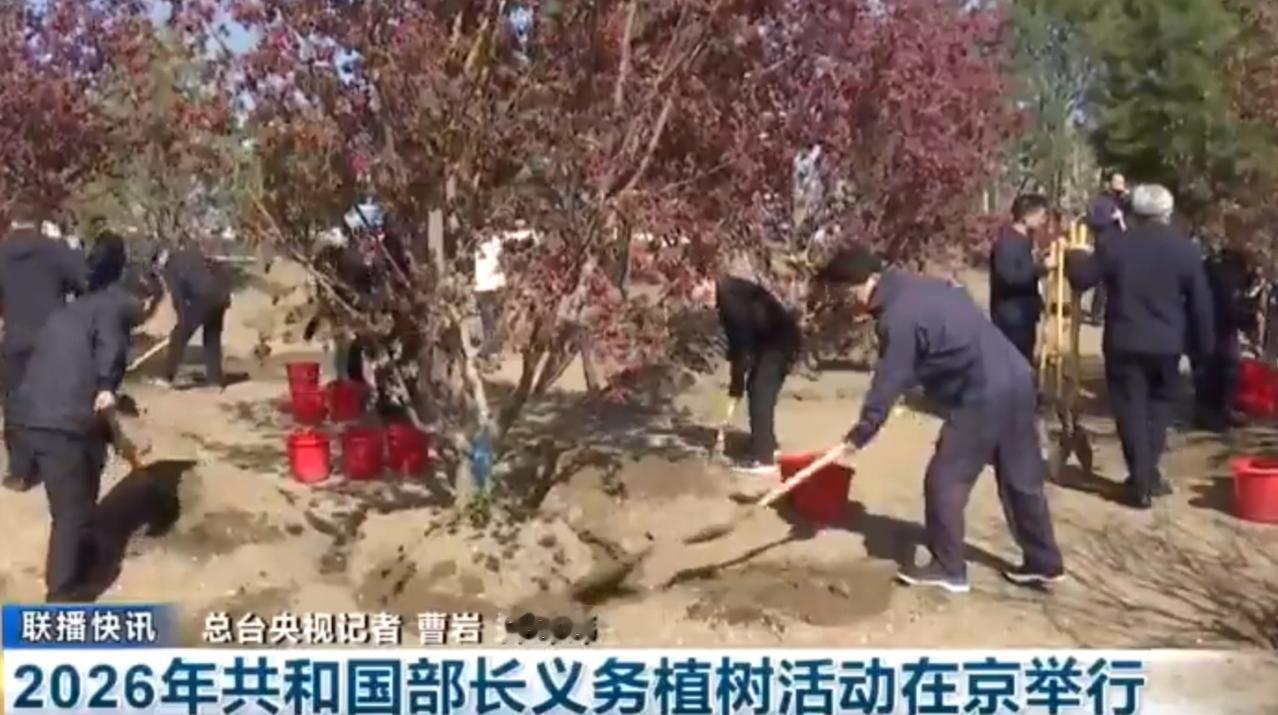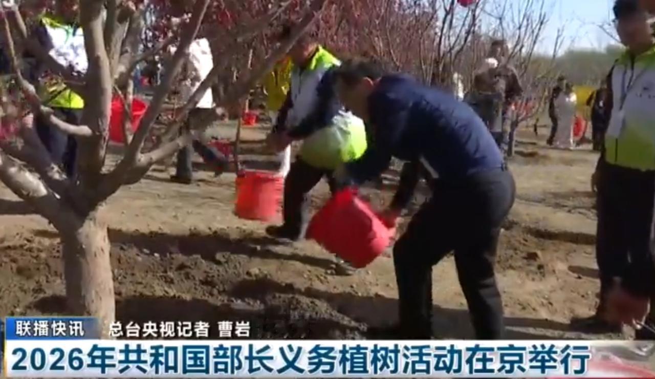春回大地,植绿添彩正当时。2026年共和国部长义务植树活动在北京火热开展,众人手持铁锹、躬身劳作,扶苗、培土、浇水,每一个动作都饱含对生态建设的热忱。红色水桶整齐摆放,新栽苗木迎风挺立,为大地注入蓬勃生机,以实际行动践行绿色发展理念,让绿水青山的底色愈发鲜亮。