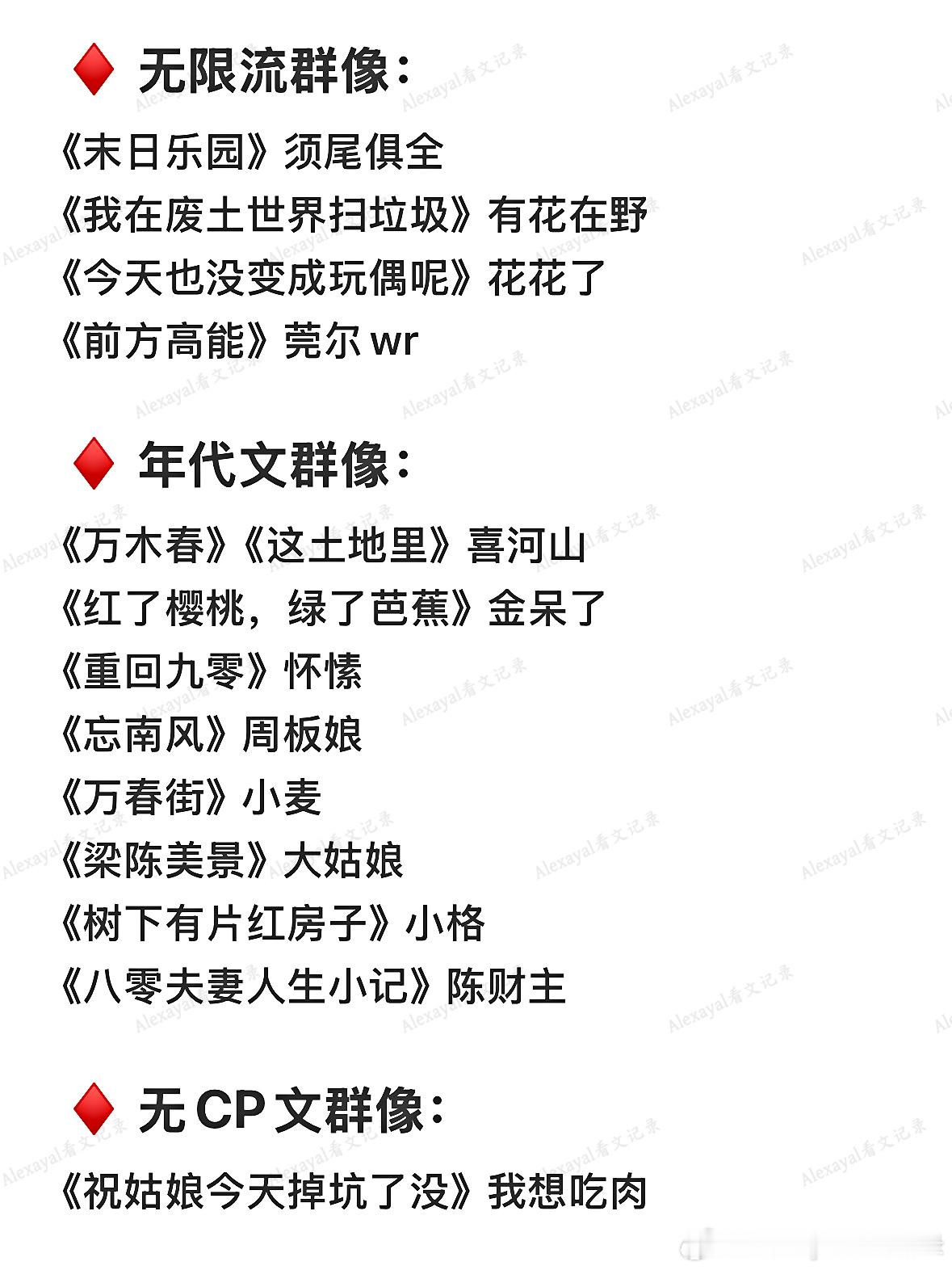 ♦️ 无限流群像:《末日乐园》须尾俱全《我在废土世界扫垃圾》有花在野《今天也没变成玩偶呢》花花了《前方高能》莞尔wr