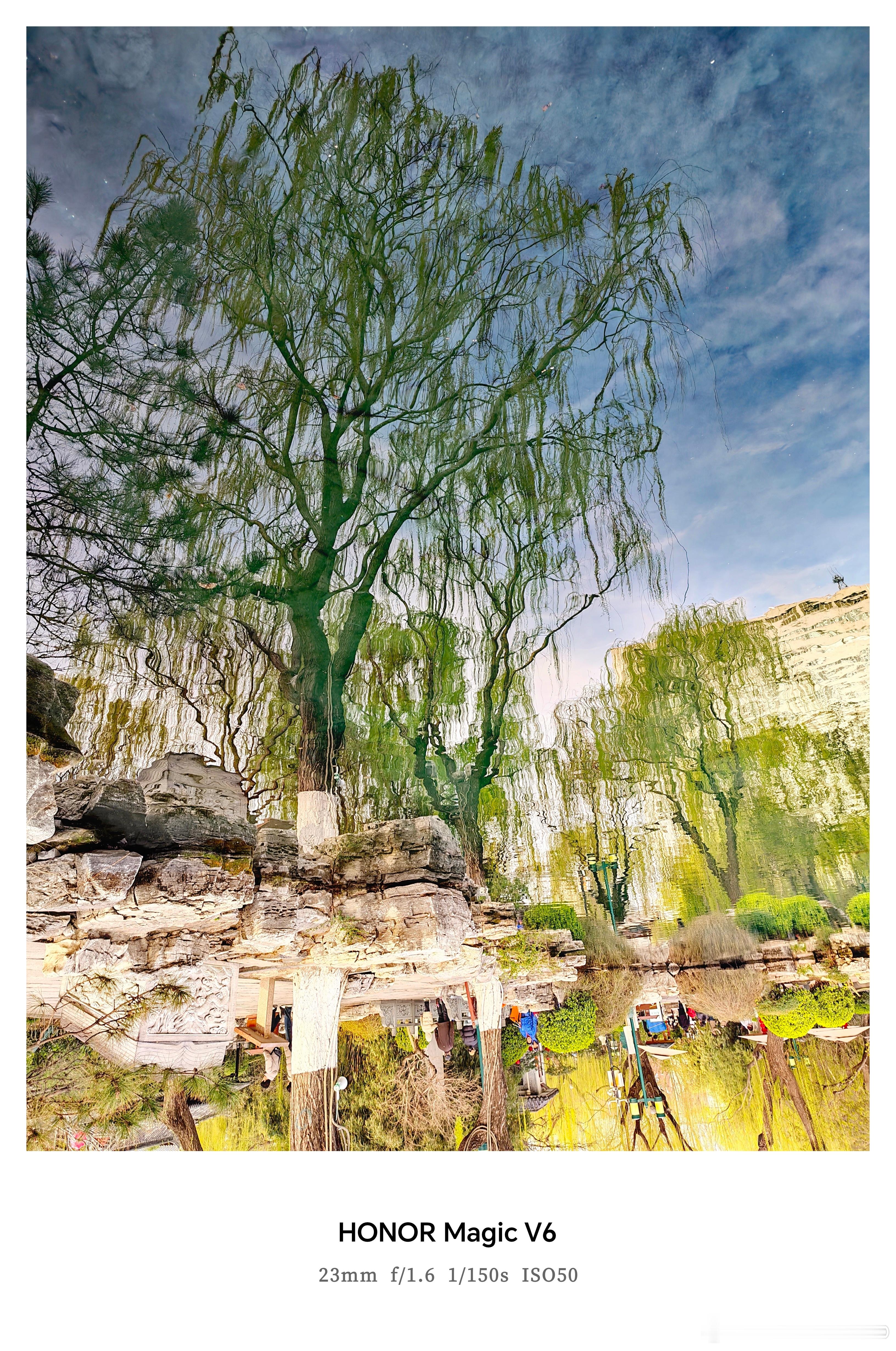 这个视角拍出来的照片是不是很特别其实很简单,找一处有水面的场景,拍照的时候把手机