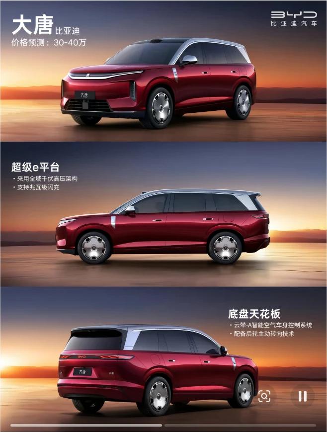 比亚迪杀入新能源9系旗舰红海市场!继蔚来ES9、理想L9、问界M9、极氪9X、智己LS9后,比亚迪也推出不叫9的9系大型旗舰SUV—大唐!梦回大唐是每个男人的梦想,购入大唐同样也将成为一种潮流!