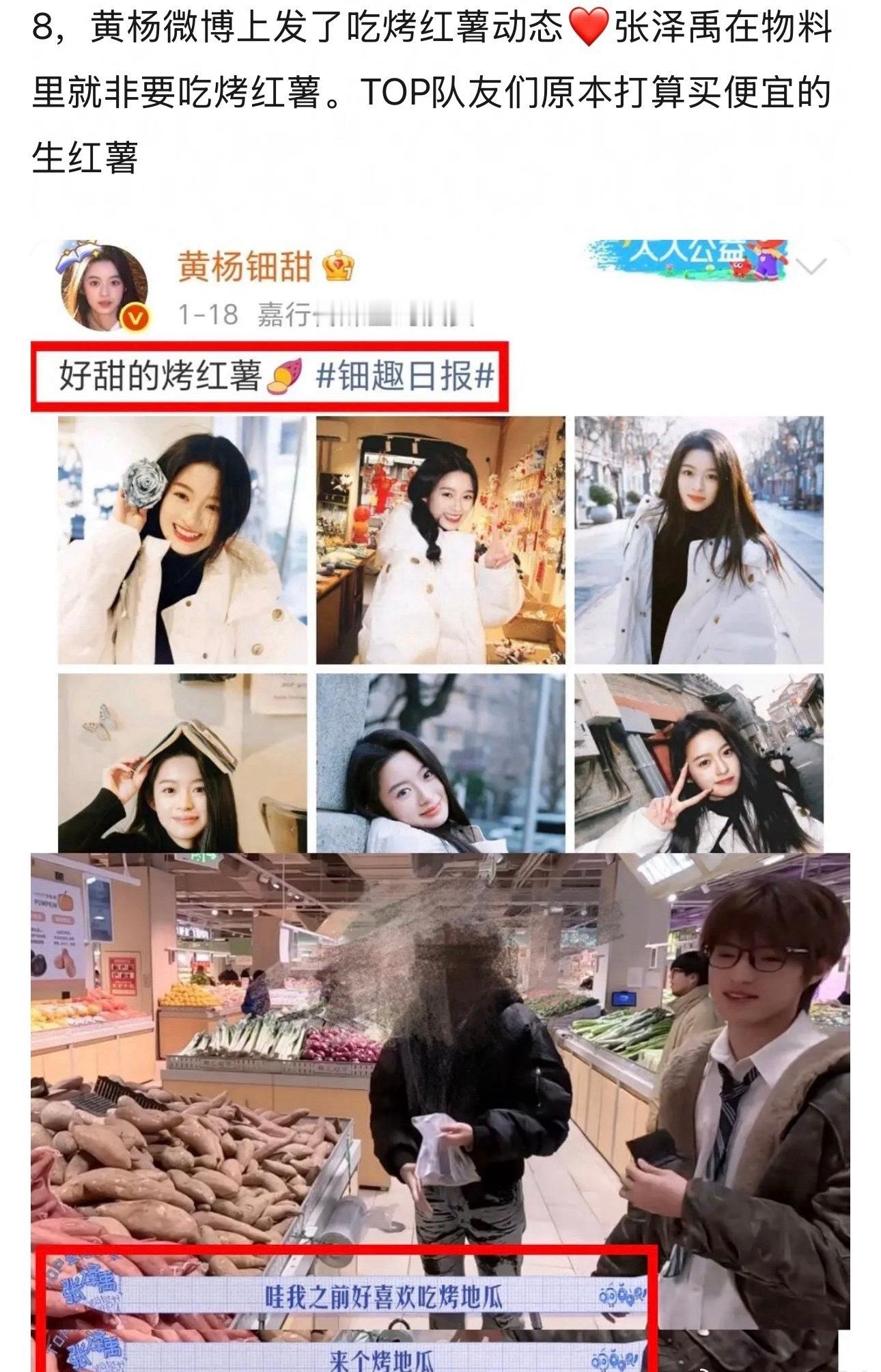 8,黄杨发烤红薯动态,张泽禹在物料里提到“我好喜欢吃烤地瓜”;