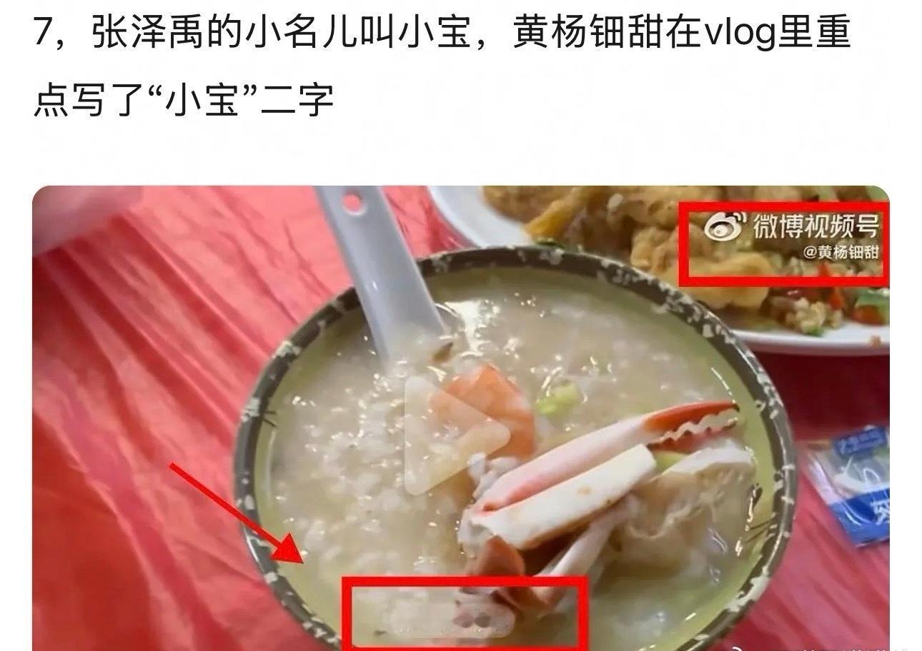 7,张泽禹小名叫“小宝”,黄杨vlog里配文“来小宝请吃”;
