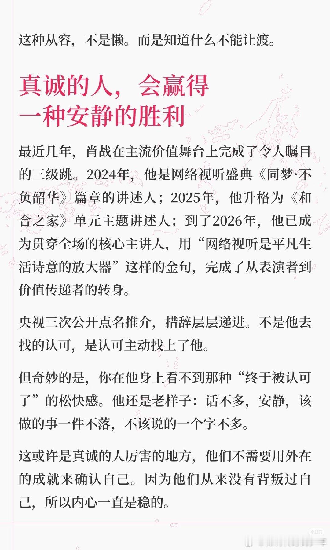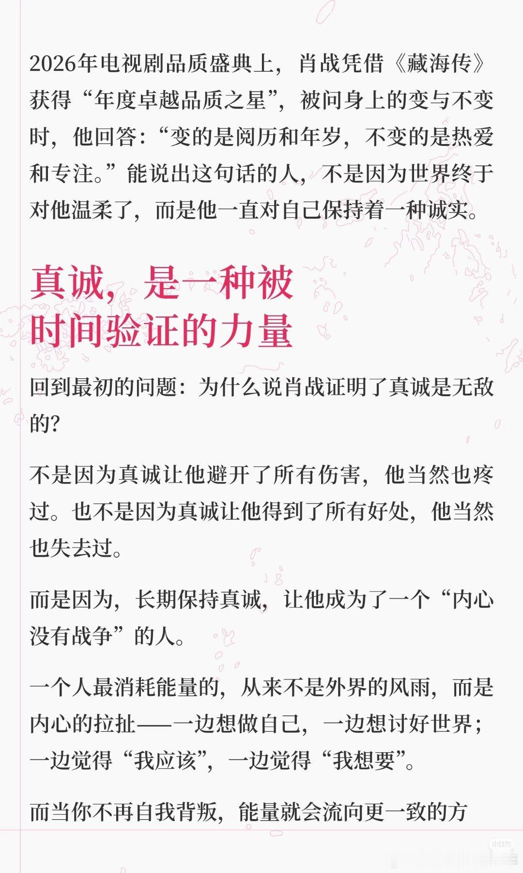 肖战证明了:真诚,才是无敌的!说得太准确了~既客观又精准,既有广度又有深度,真棒👍🏻! 肖战人格魅力 无穷大,肖战是理想自我的投射!