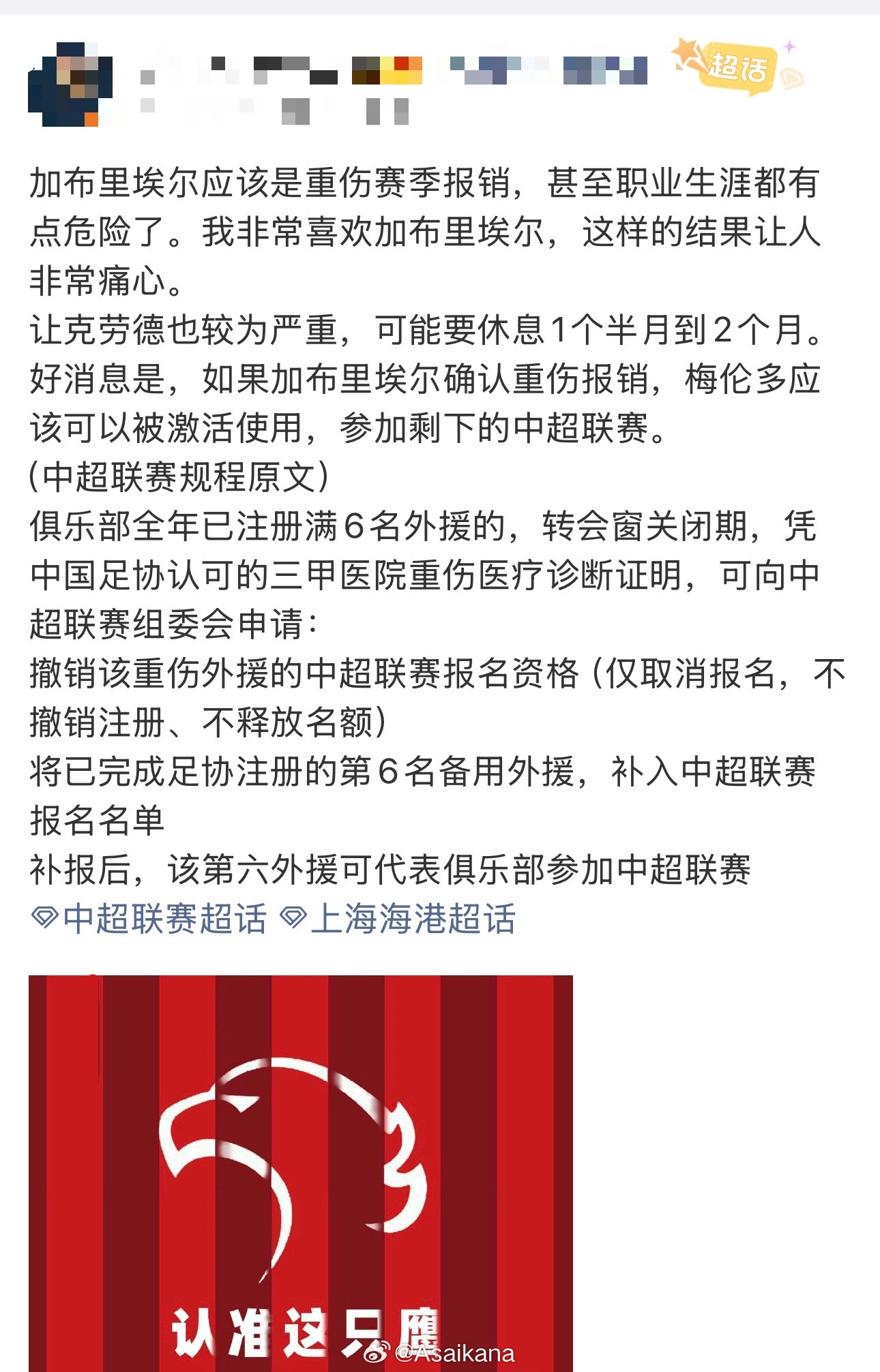 收到大量询问,统一回答:没有这样的规则,外援补报名需要在二转期间进行。该博主所贴“原文”很有AI杜撰的感觉:因为中超有一条特殊规则,允许国内球员在代表国家队比赛训练时重伤,经国家队队医确认缺席赛季的,当即补报名国内球员。这很容易迷惑AI并杜撰出错误的“规则原文”出来。加V认证的博主,传播信息时应谨慎,多加核实。