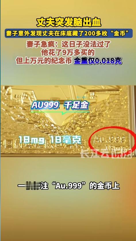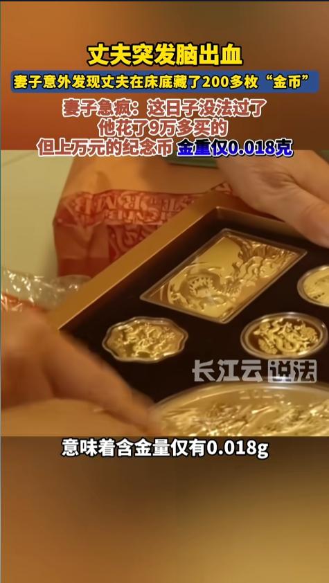 “这是救命的钱啊!”近日,河南,一老人突发脑出血,老伴儿在照顾时,偶然发现,床底下藏了一批金币,一共有200多枚。她本想着能用来救急,可仔细一看,竟全是镀金货,一查账单,买的时候花了9万多!气得她对着老伴儿一通爆锤!
