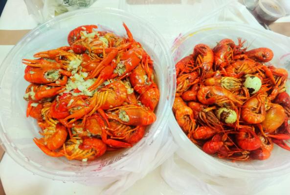 这回还挺下血本,一下买了两份,大份蒜蓉小龙虾100门,小份麻辣小龙虾50门