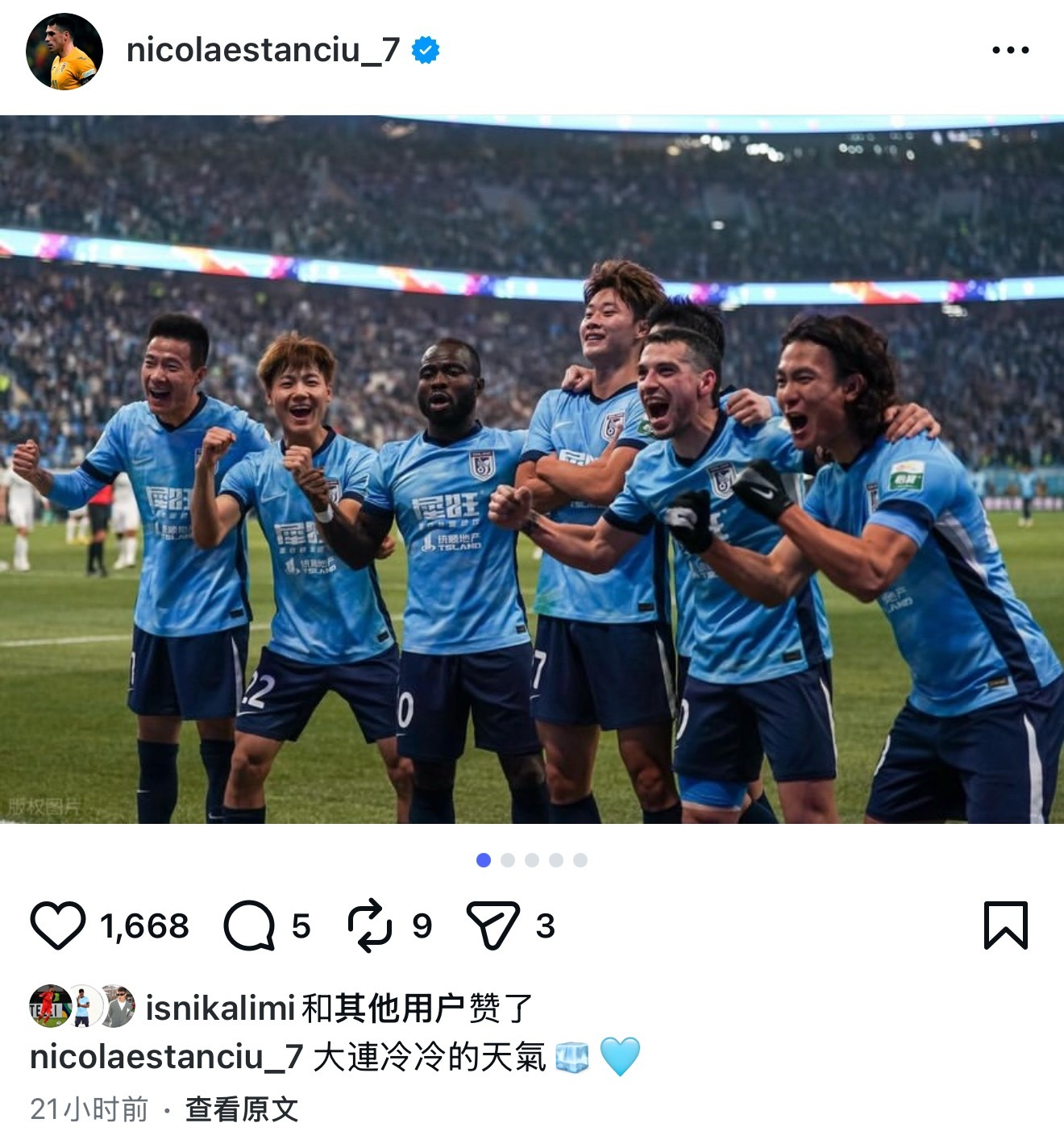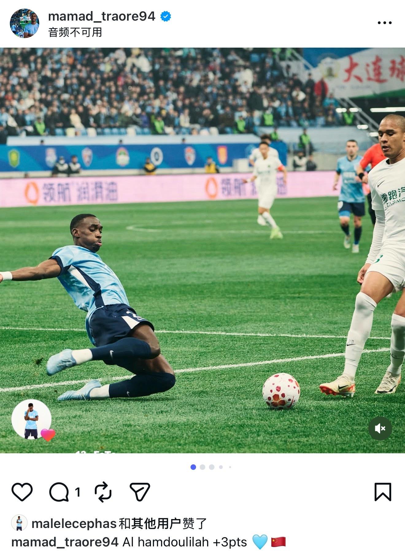 大连英博中超联赛大连英博3比0浙江队 马马杜&斯坦丘赛后社交动态 大连