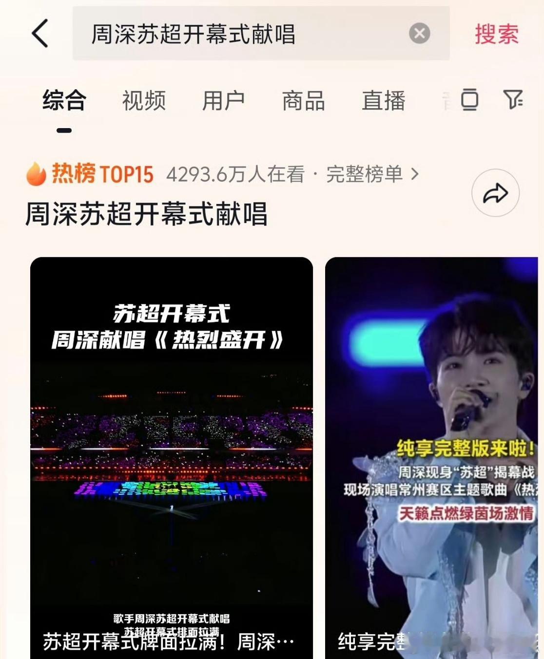 周深给苏超开幕式献唱的主题曲《热烈盛开》播放破千万➕全网话题量1.5亿➕抖热榜第