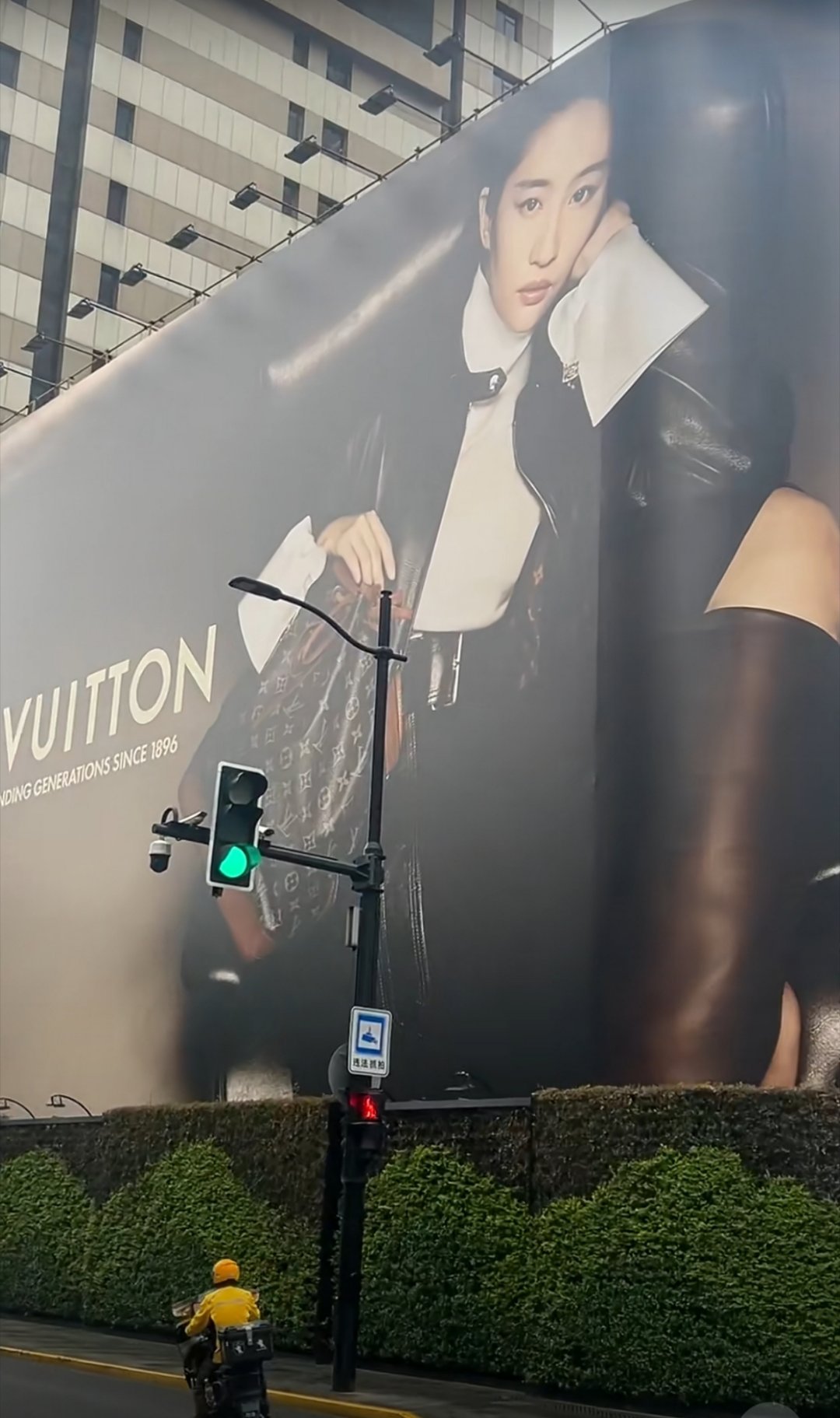 上海朗庭酒店对面刘亦菲LV巨幅地广硬广,2月7号我就在那梦了,这块LV经常铺。LV Monogram 130周年全球广告真牛 专栏 · 刘亦菲LV硬广地广