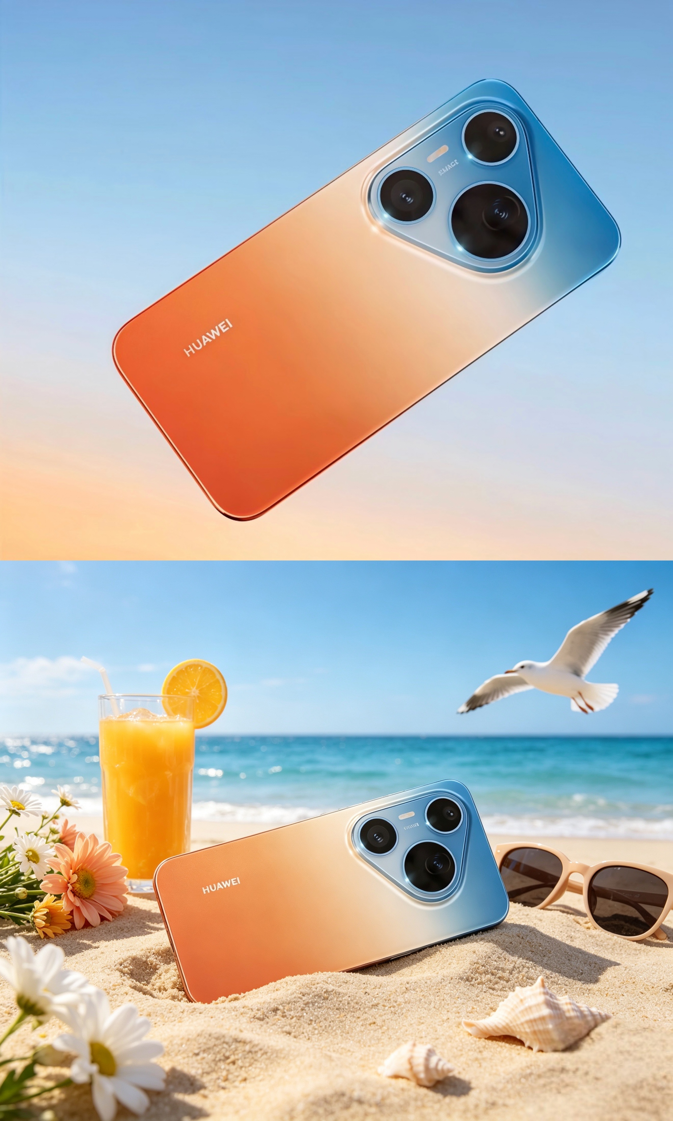 我润色了一下“橘子海 ”是不是有点那个味道了?海滩、晚霞、海浪、贝壳、饮品、鲜花