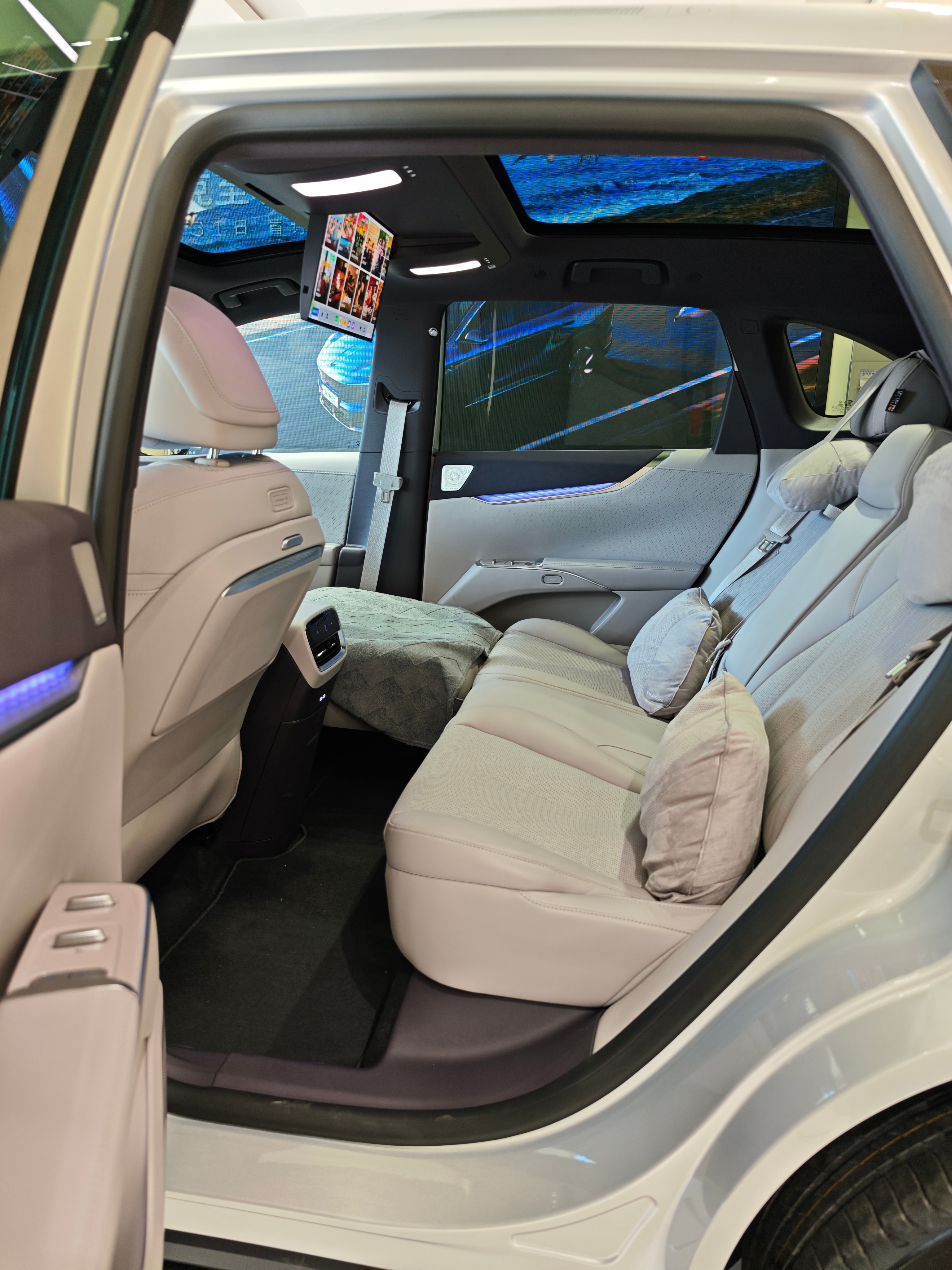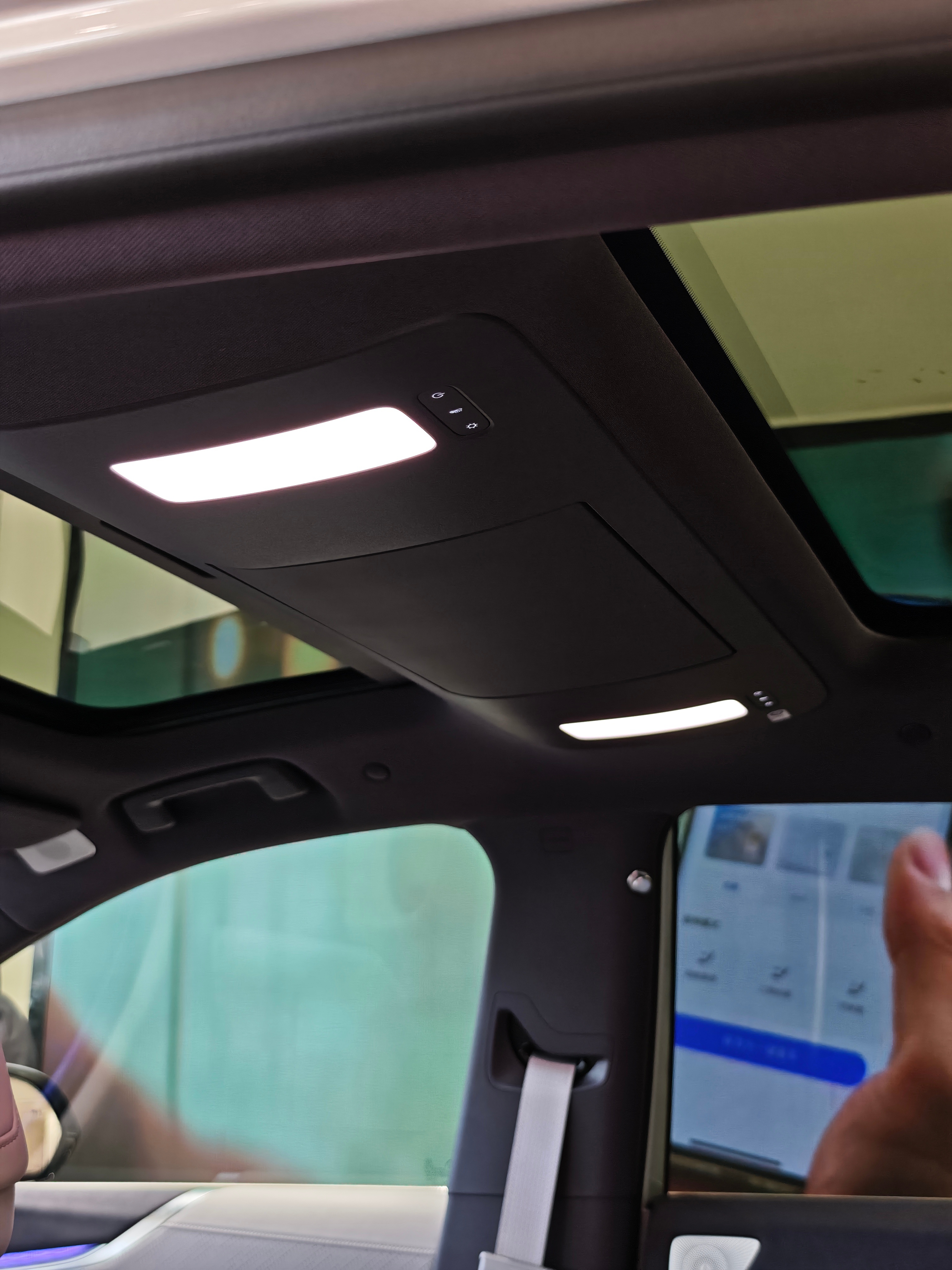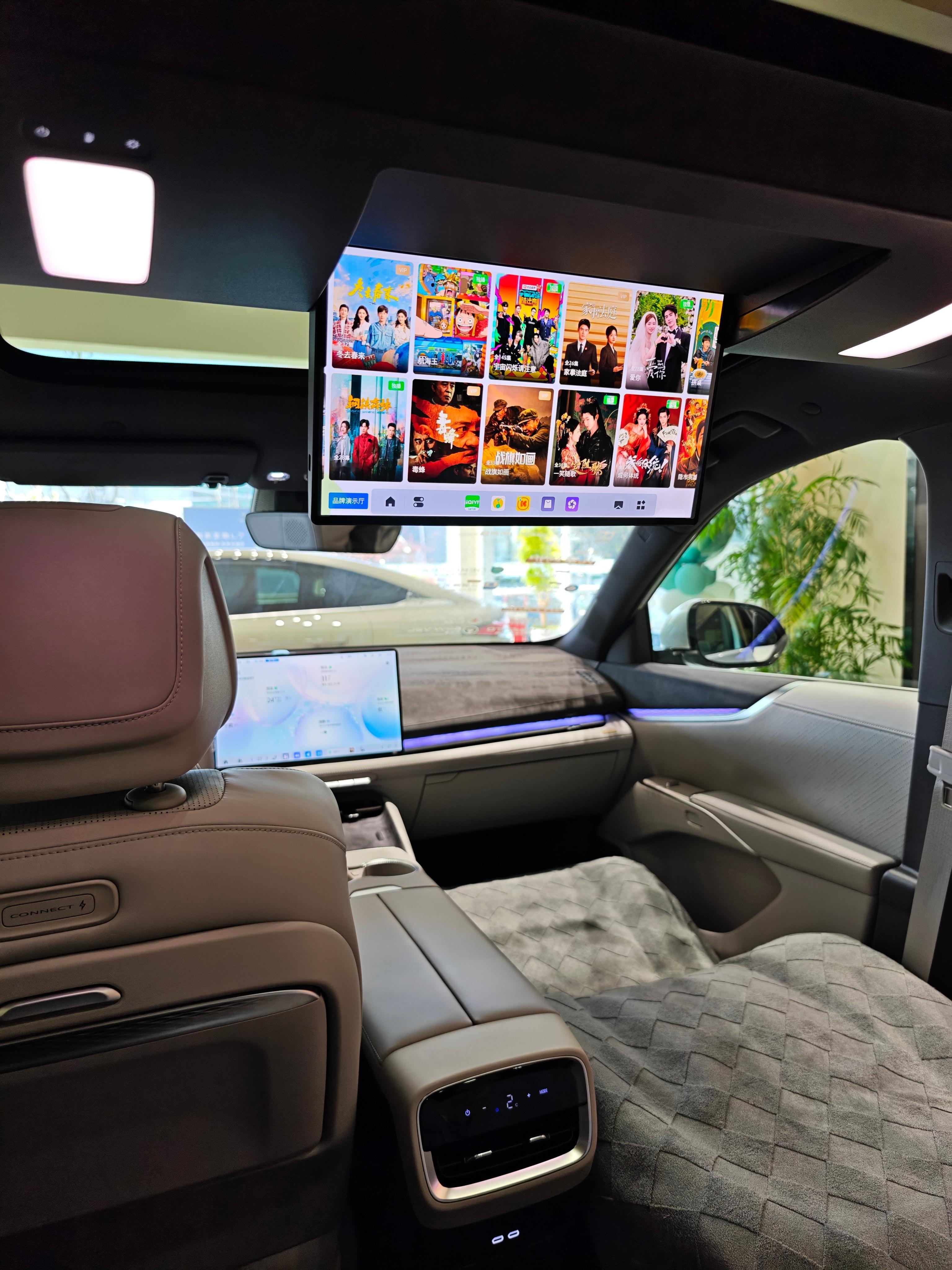 座椅非常非常舒服,前后排都是,有下陷有支撑。配置给的很足,后排冰箱彩电都有。后排吸顶屏两侧有柔光灯,可以调节色温和亮度,特别好的一个小设计。