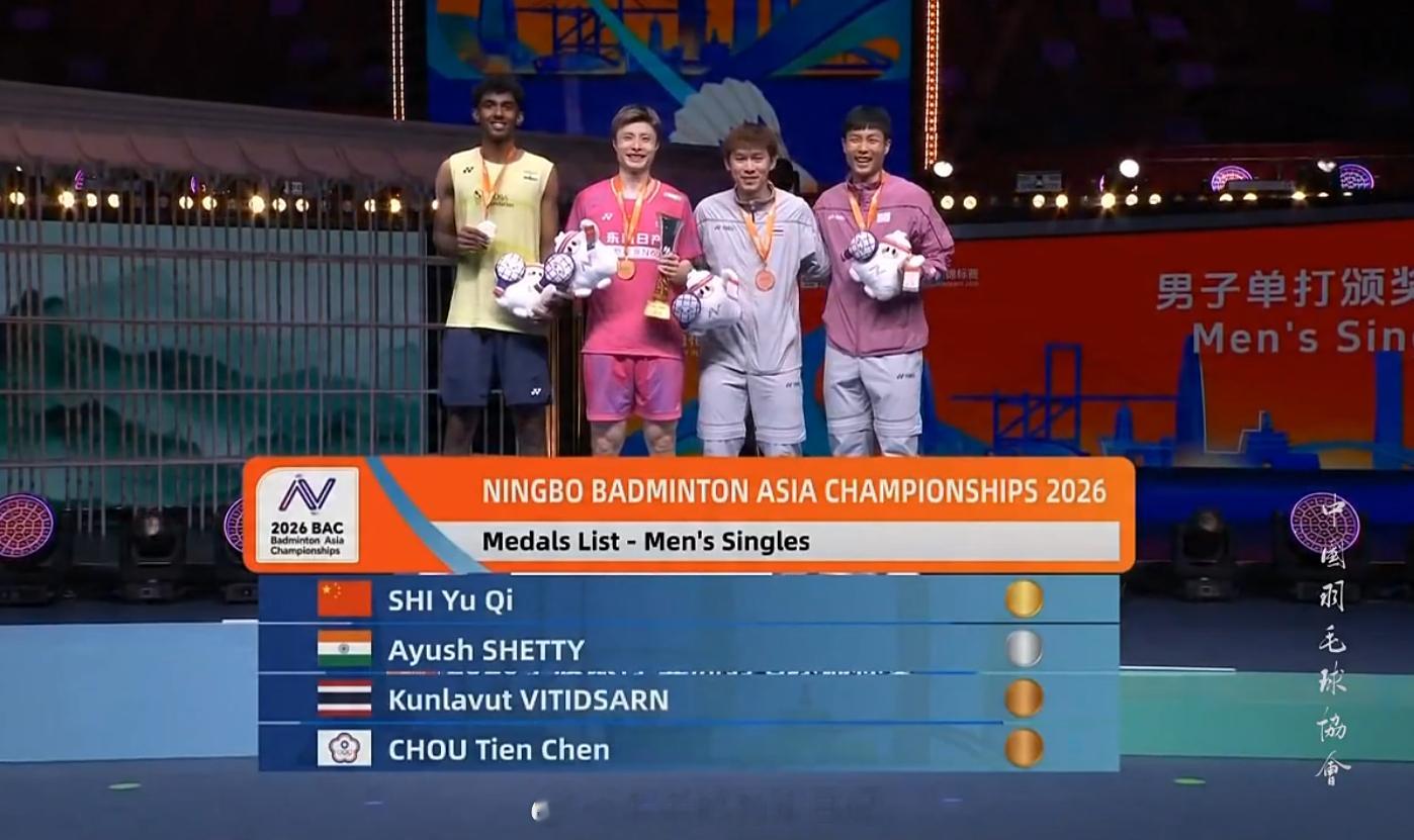 男子单打冠军 石宇奇亚军 阿尤什季军 周天成 昆拉武特