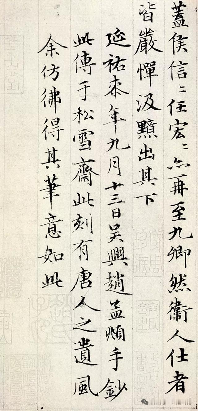 这篇书作就连赵孟頫自己都认为得唐人遗风笔意,倪瓒说:“子昂小楷,结体妍丽,用笔遒劲,真无愧隋唐间人。”用笔不下于智永,虞世南,得称一世之冠。可见《汲黯传》小楷书法的历史地位。