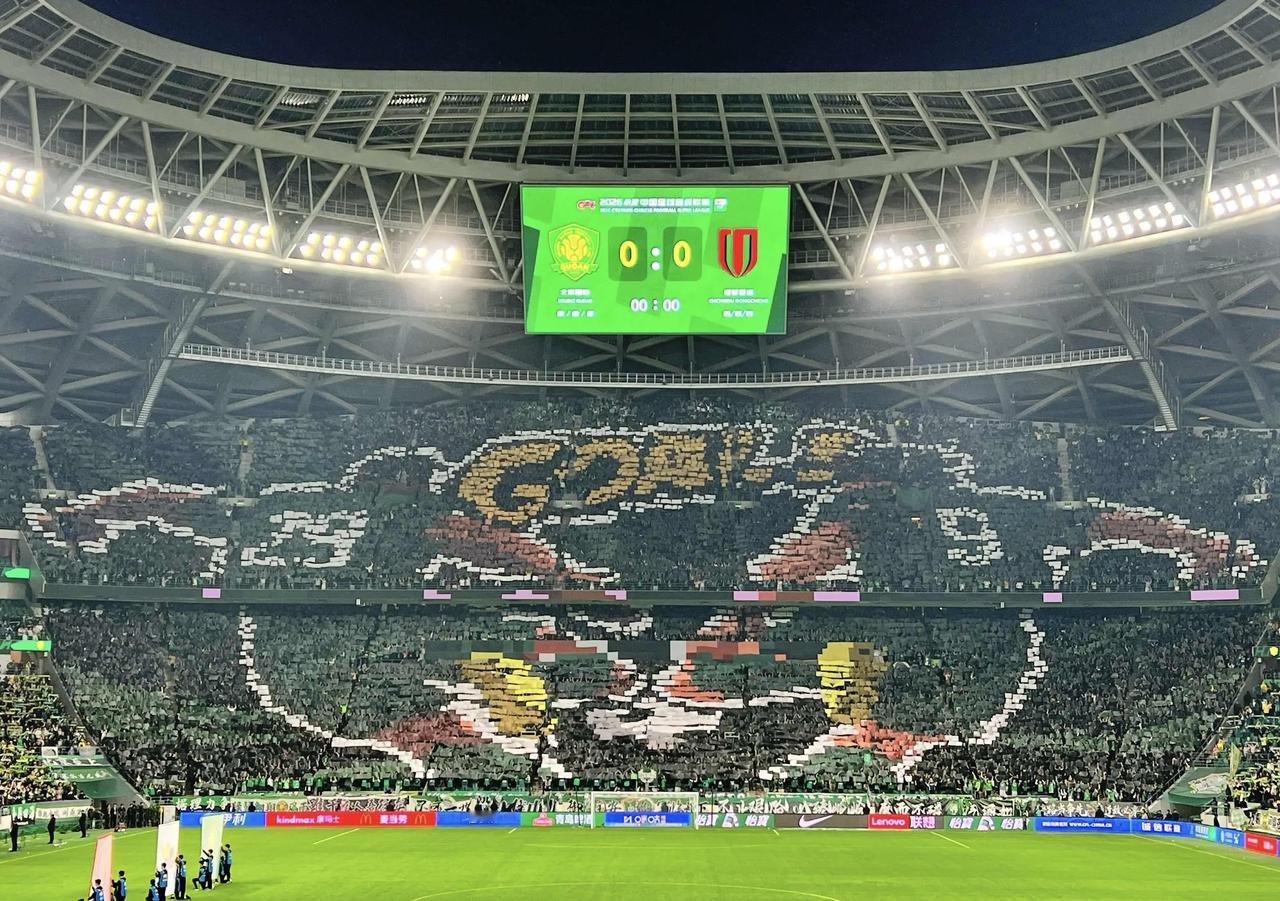虽然1:2不敌成都蓉城,但工人体育场的巨型Tifo真是让人震撼,展示了他们的当家