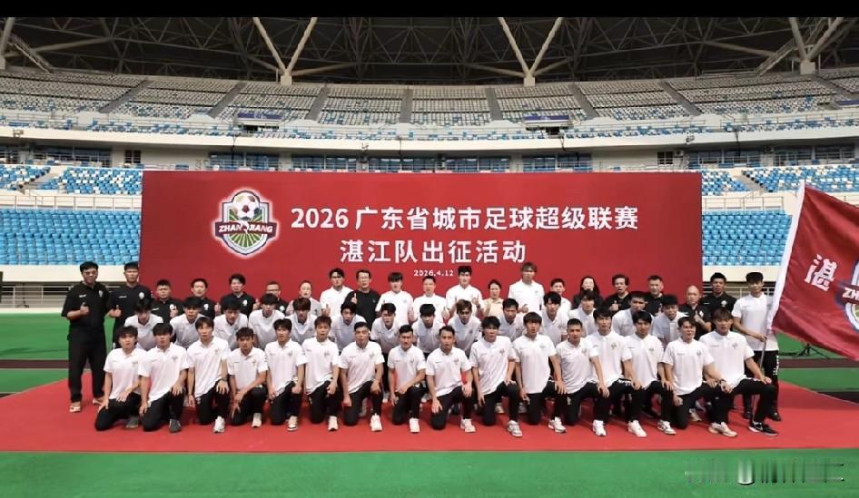 备受关注的2026年粤超联赛即将开启,湛江队在主场湛江奥体中心搞了一个出征活动仪式。副市长给湛江队授旗,队员们在湛江队队旗上签名。主教练李春成,这位昔日广东队的猛将率领湛江队征战粤超联赛,他介绍湛江的备战情况,说湛江队主要由湛江热点和吴川青年这两支拥有冠军荣誉的球队的部分球员组成,目标是争取前四名。参加粤超联赛的21支广东省城市代表队,大家都在积极备战,各具实力,所以希望湛江队不能掉以轻心,必须全力以赴。当然,湛江队要取得好成绩,还需要湛江市民球迷积极到现场呐喊助威,为湛江队加油!湛江球迷,湛江奥体中心见!